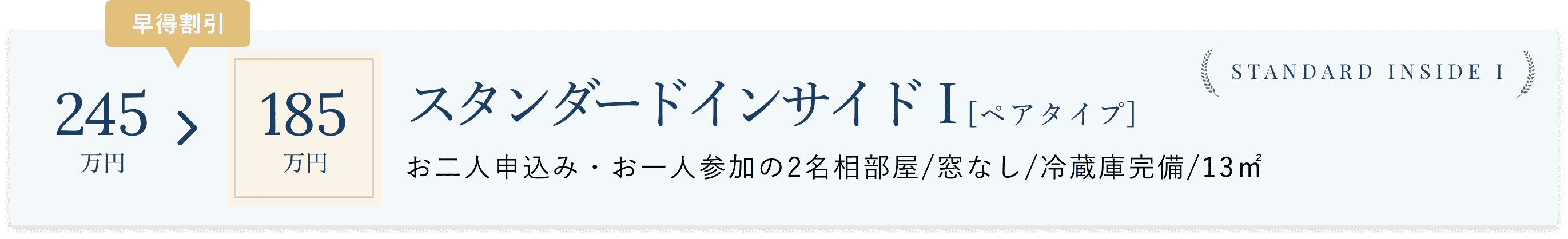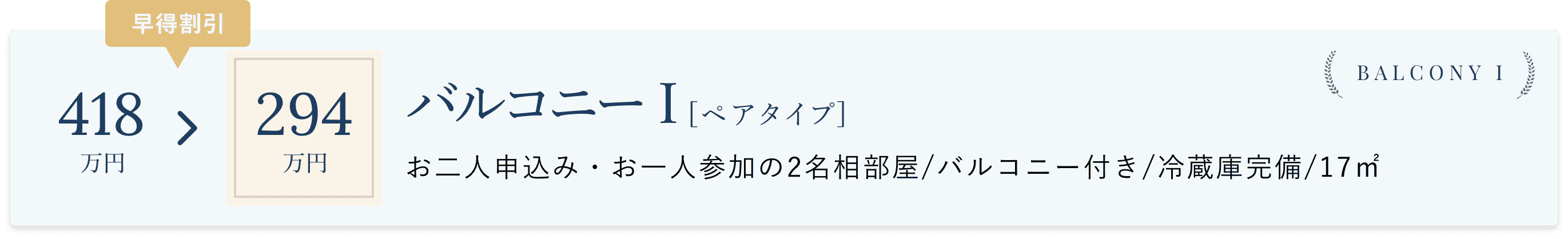 ●記載旅行代金はVoyage121の旅行代金です●いずれも大人お一人様旅行代金です●上記の船室クラスは一例で、その他の船室タイプもございます。詳しくはお問い合わせください●旅行代金にチップ、ポートチャージ、ビザ取得代金、国際観光旅客税、オプショナルツアー代金は含まれません