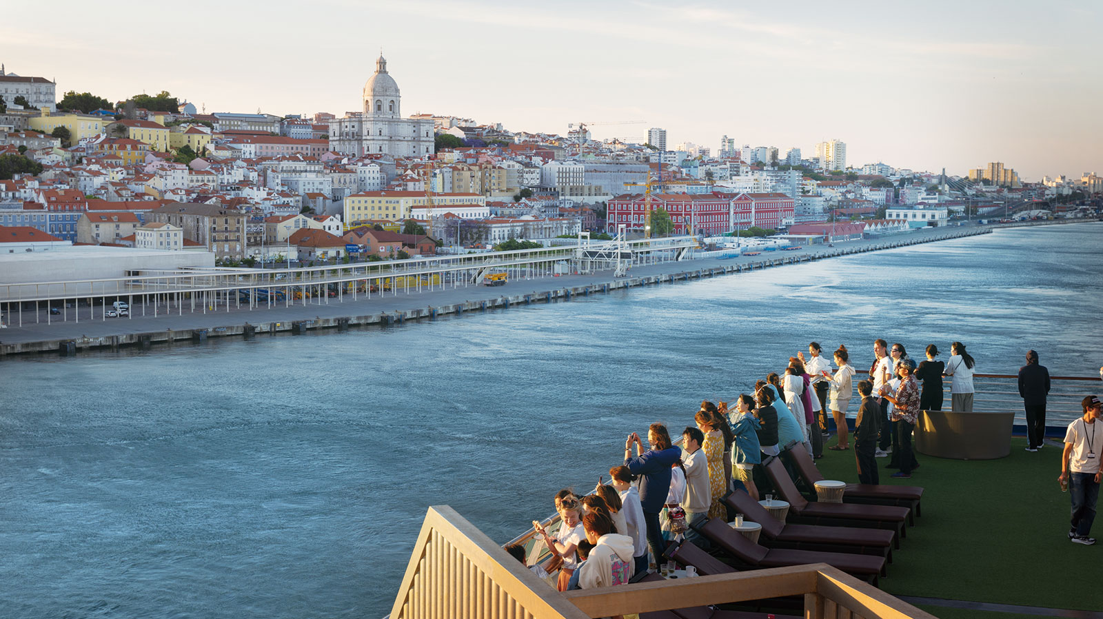 北緯38度43分。新潟、仙台とほぼ同緯度にポルトガルの首都リスボンはある。ヨーロッパの船旅は、大航海時代を世界にもたらし、戦国の日本に南蛮渡来ブームを巻き起こした国より始まる。その港からザビエルが東洋に旅立ち、天正遣欧使節の4人の少年が欧州に第一歩を記した。そんな過去と、街角でイワシを焼く光景を見かけることで、日本から遠く離れた街なのに、どこか懐かしさを感じさせる。出港したパシフィック・ワールド号はテージョ川を下り、大航海時代の栄華を現在に伝える世界遺産・ジェロニモス修道院やベレンの塔をみながら大西洋に乗り出す。