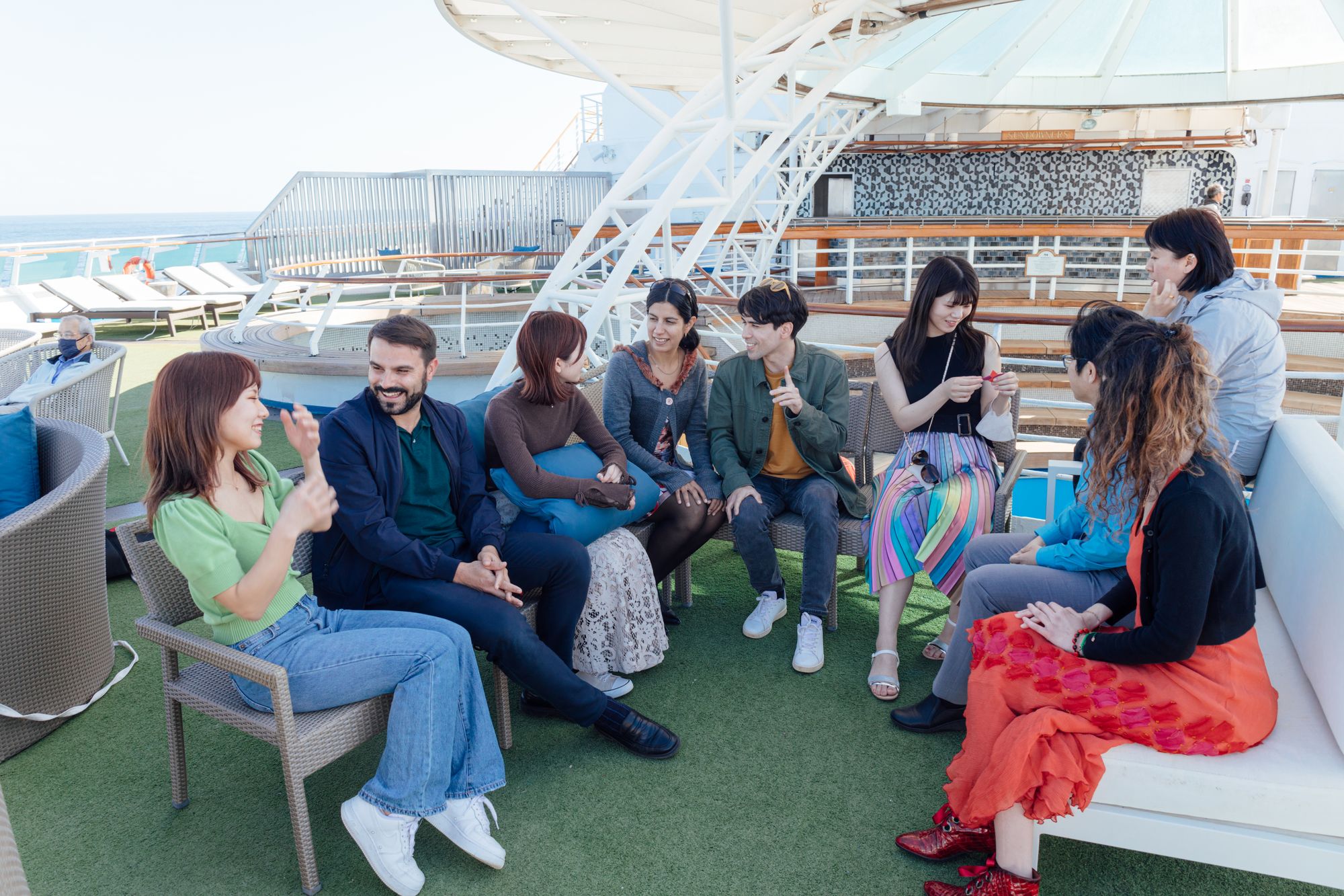 出発地から目的地までを最短距離で結ぶ飛行機の旅とは異なり、船旅の魅力は移動の時間も、自分自身で自由にカスタマイズできることかもしれません。船内には、普段の忙しない日々の中ではなかなか取り組めないことにも、日常から離れた旅の中では向き合えたりする自分への「プレゼント」のような時間があります。何をするのも自由な、たくさんの可能性を秘めた時間の中でゆったりと好きなことに没頭したり、カルチャースクールで新たな趣味を見つけてみたり、思い思いの時間を過ごします。