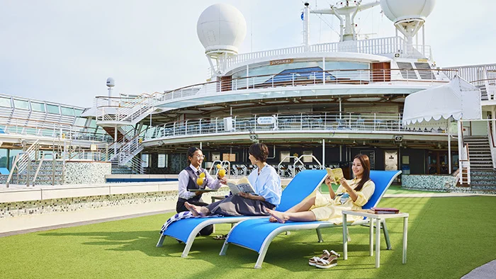 全11フロアを乗客エリアとして使用し、4層吹き抜けのアトリウムやレストラン、ラウンジなどのパブリックスペースは、フィジカルディスタンスが十分に確保できる広々とした設計が特徴的です。海を近くに感じられる上質なやすらぎが、船旅をより充実したものへと導きます。
