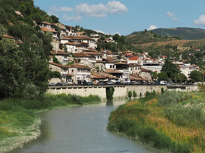 ドゥラスやティラナから足をのばして、世界遺産の街ベラトを訪れるのもおすすめです。特徴的な大窓が配されたオスマン帝国時代の漆喰づくりの家々が、川辺から丘に向かって建ち並ぶ独特の景観は「千の窓の町」と称され、世界遺産に登録されています。紀元前以降、ビザンツ帝国やオスマン帝国、セルビア王国に支配されるなど複雑な歴史を歩んできた街には、それらを証明するさまざまな時代の建築様式が混在しています。ベラトでもっとも古い歴史をもつカラサ地区にある、イコン画(宗教画)を展示するオノフリ美術館もぜひ訪れたいスポットです。