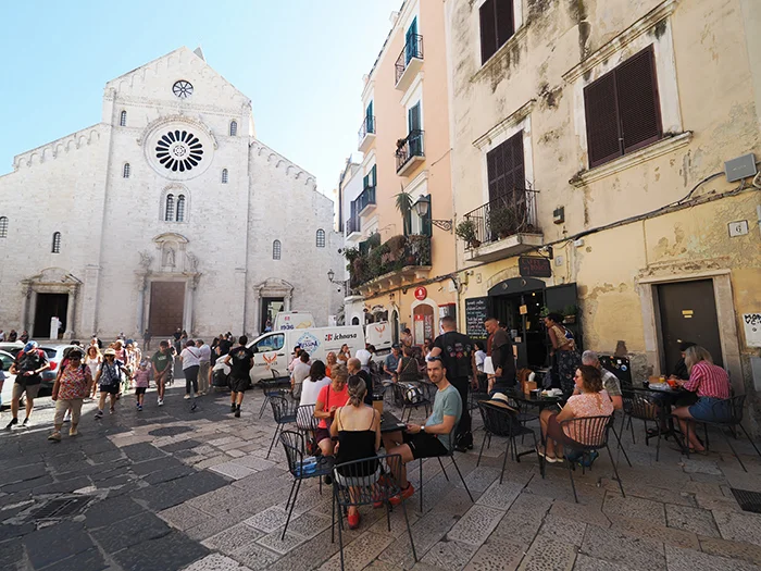 イタリア南東部の街バーリは、アドリア海に面した南イタリアの玄関口。良港に恵まれ、地中海貿易の拠点として栄えてきました。旧市街には歴史的建築物が多く、開放的な広場や縦横に延びる路地など、南イタリアの美しさを存分に感じられます。バーリの近隣には世界遺産の街々もあり、渓谷沿いに迷宮のような洞窟住宅が続く“セピア色の町”マテーラや、有史以前からの建築技法を受け継ぐ白壁のとんがり屋根の家「トゥルッリ」が並ぶアルベロベッロは、ぜひ足をのばして訪れてみたいスポット。この地でしか出会えない、不思議で特別な光景と出会えます。