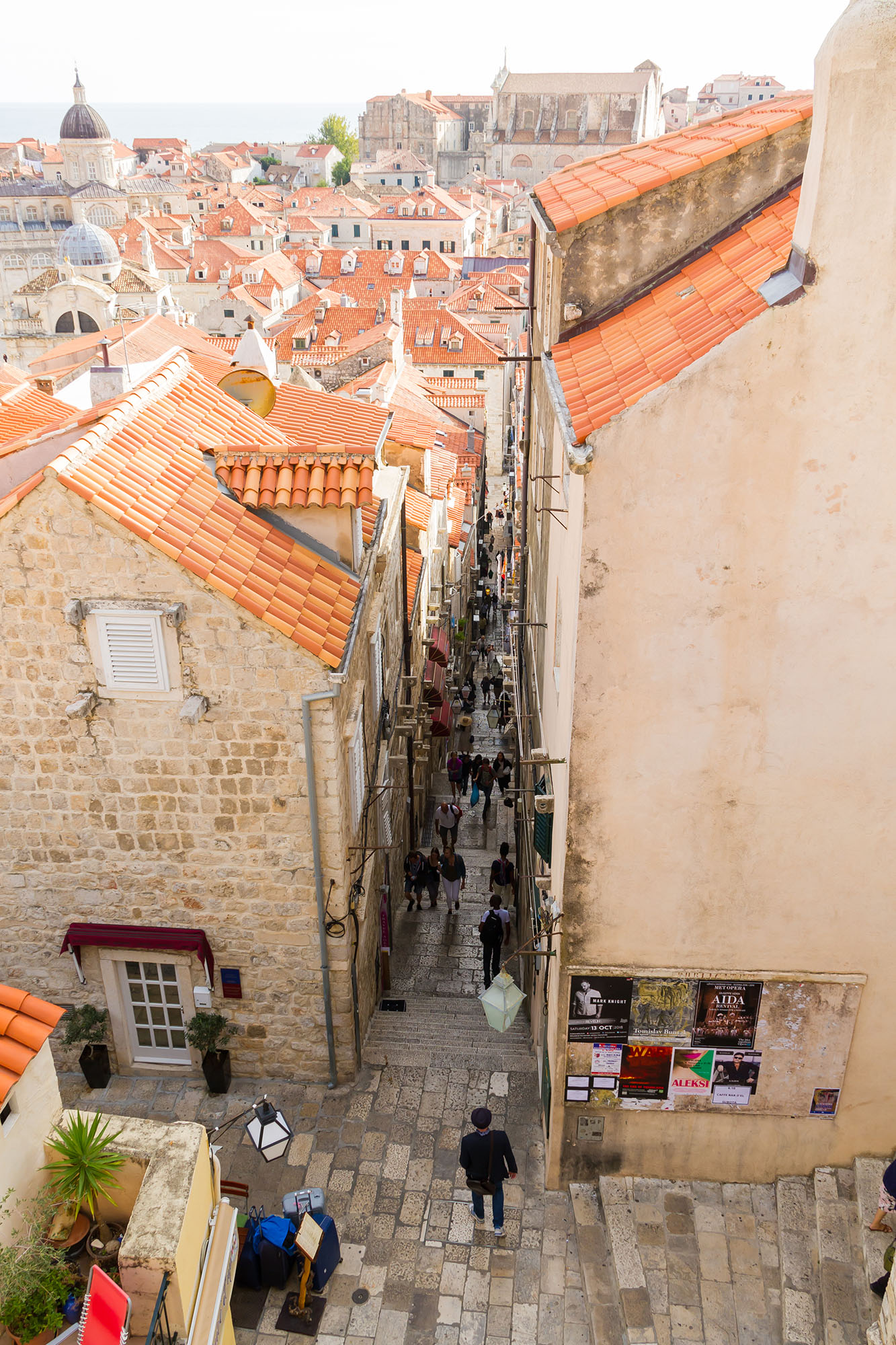 城壁めぐりへ。紺碧のアドリア海とオレンジ色の瓦屋根が織りなす風景は、どれだけ見ていても見飽きることはありません。