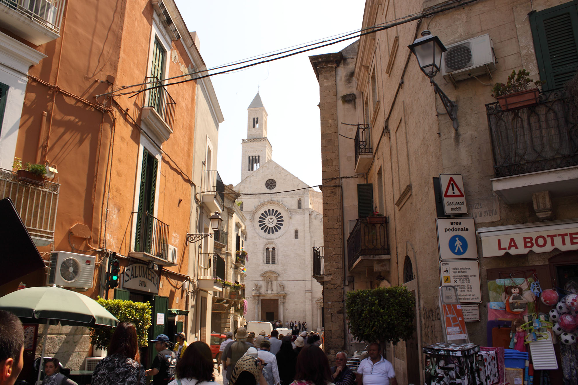 路地が何本も交差するバーリの旧市街の中心にはカテドラルがあり、サン・二コラ聖堂や劇場などの見どころがあります。