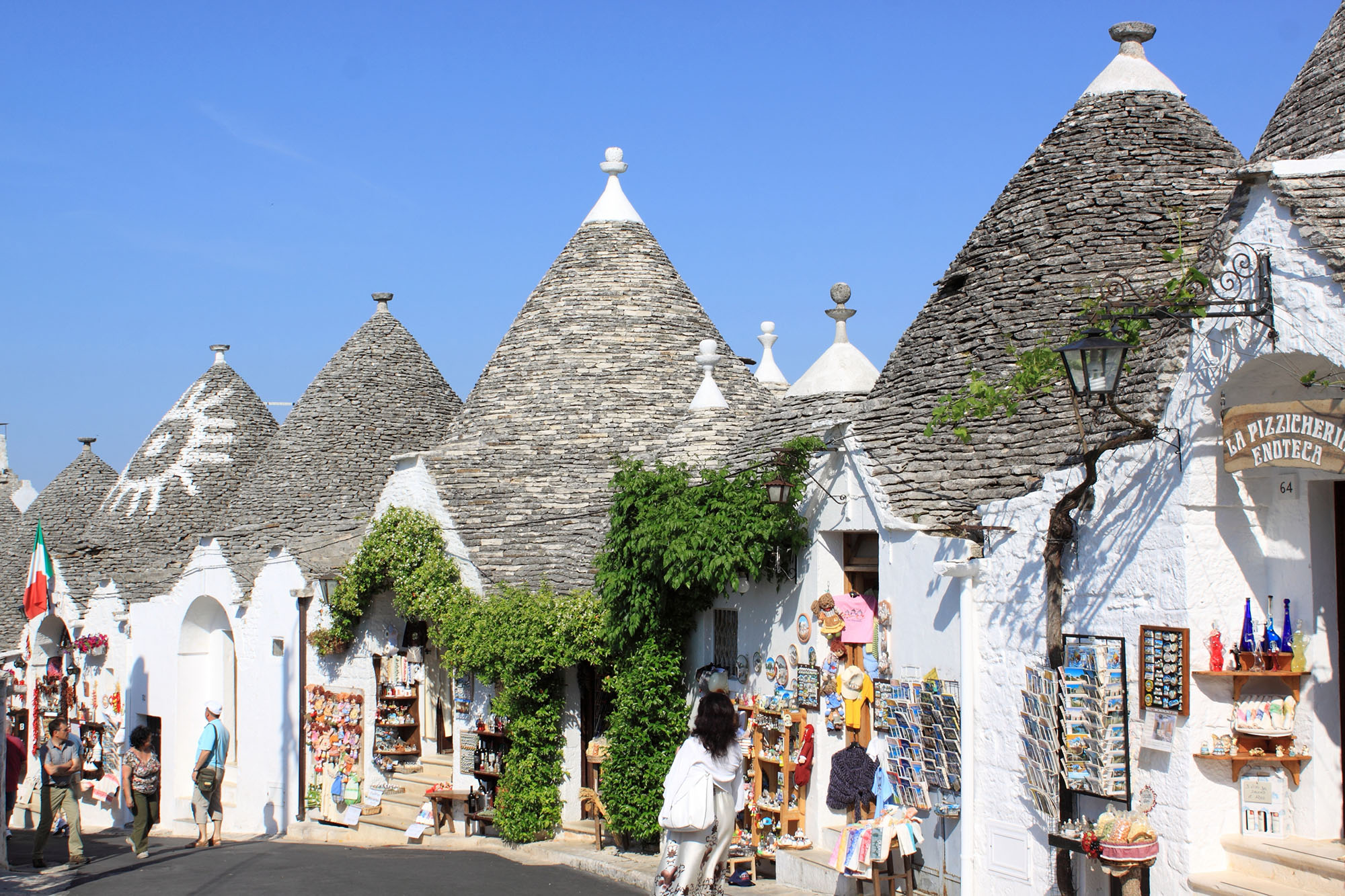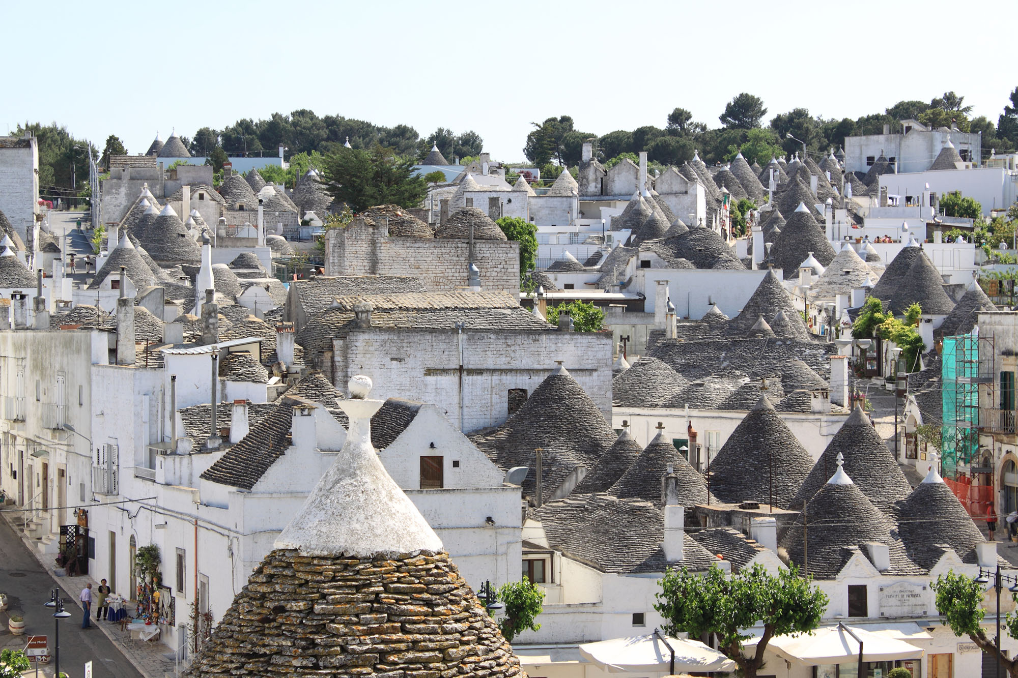とんがり屋根の白い家“トゥルッリ”がどこまでも続くアルベロベッロの街並み。まるでおとぎの国のような風景が広がっています。