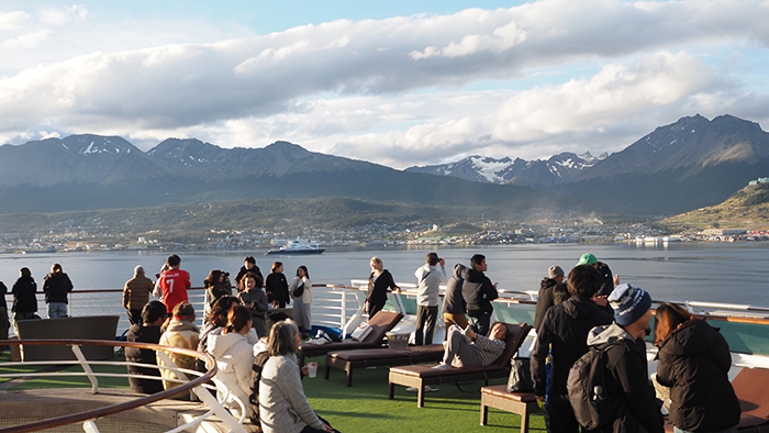 1年の多くを氷で閉ざされる極寒の南極も、夏季は観光シーズンを迎えます。世界中の好奇心旺盛な人びとが南極旅行への玄関口となるアルゼンチンの最南端の街ウシュアイアに集います。南極まではおよそ1,000キロメートル、多くの客船が南極を目指し出航していきます。しかし、向かうは極地。天候や風向き、海、氷、そして動物たちの状態など、あらゆる情報を総合して詳細な航路が日々決定されていく様は、まさに秘境クルーズの様相です。