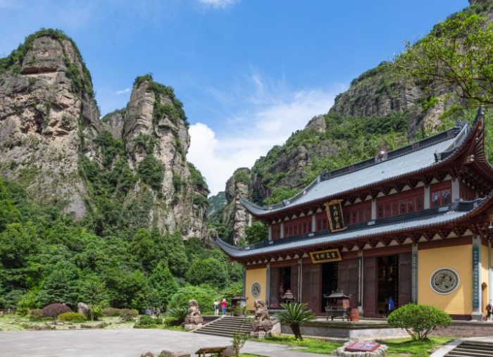 中国でも有数の景勝地として知られ、多くの画家や詩人もその雄大な姿を称えた雁蕩山へ。約1億年前の活発な火山活動によって誕生した山塊が長い年月をかけて侵食され、独特の景観をつくりだしている雁蕩山は、地質学的な価値から世界ジオパークにも認定されています。1,000メートルを超える巨大な岩峰がそびえ、その狭間に唐や宋の時代に開かれた名刹が残る、山水画のような景観はまさに圧巻。奇岩や鋭い峰々、滝、洞窟などが織りなす雄大な風景の数々は、訪れる人びとを魅了します。