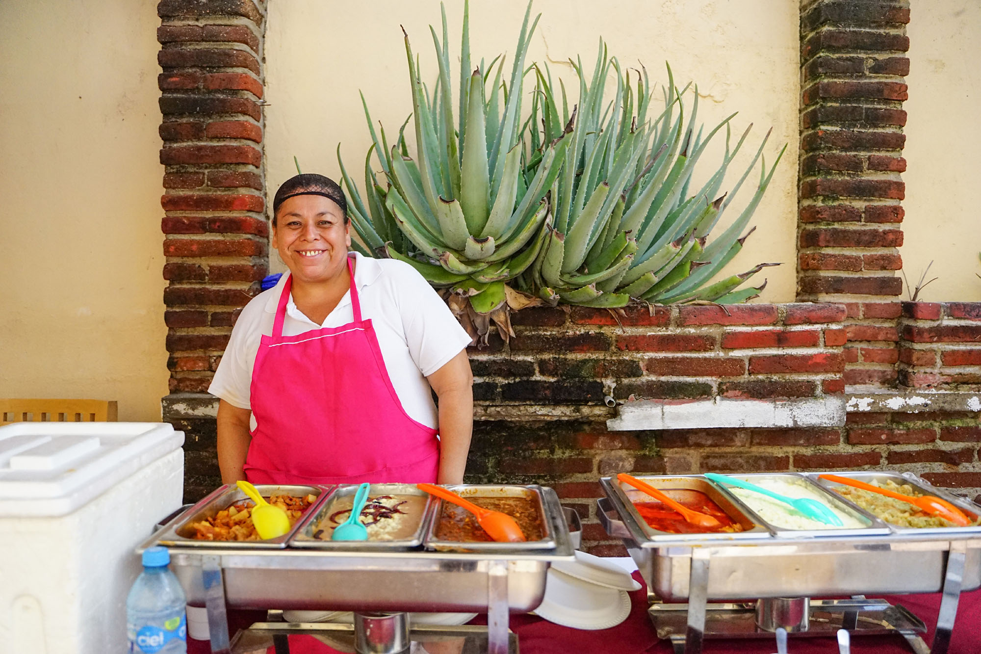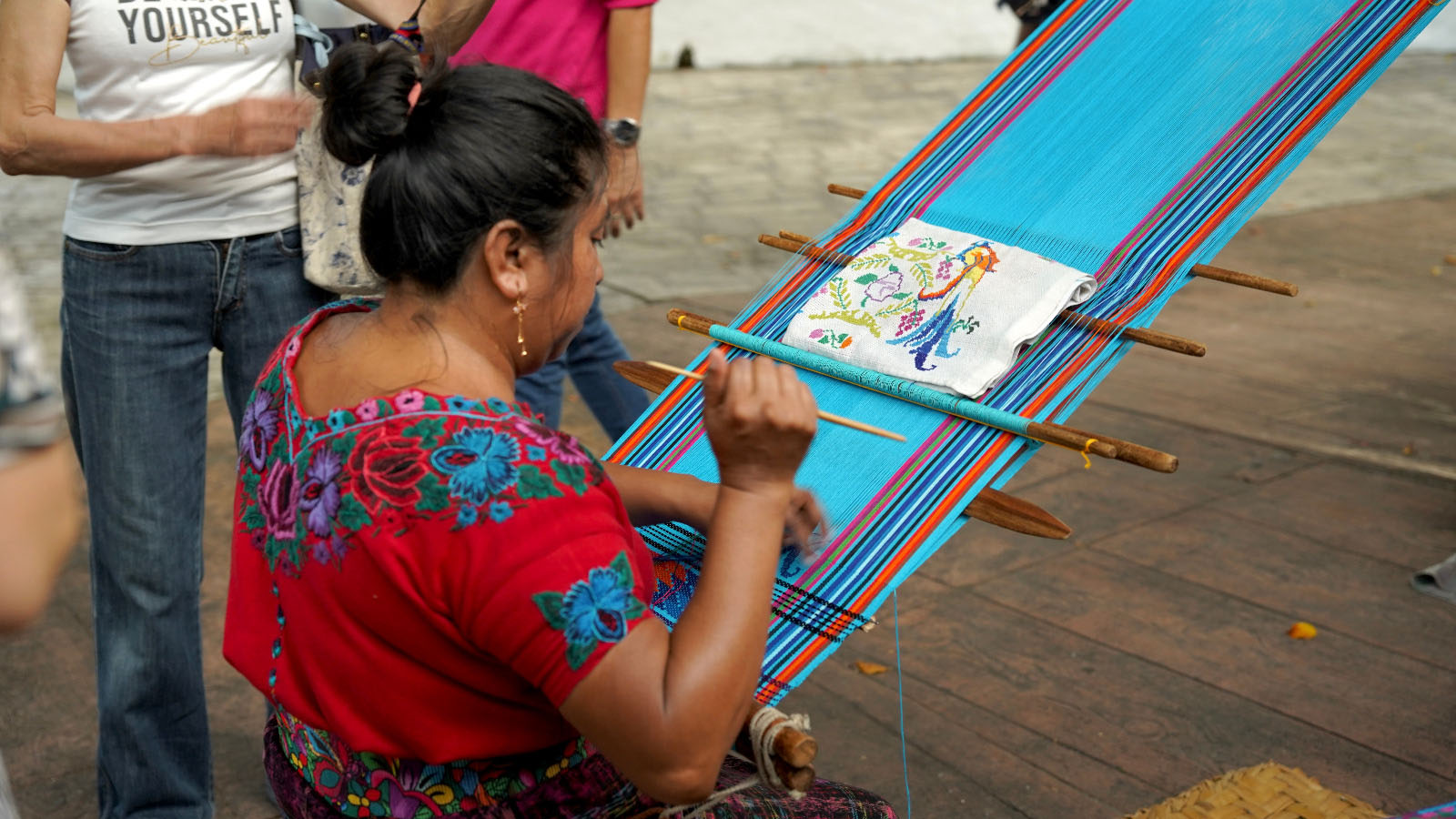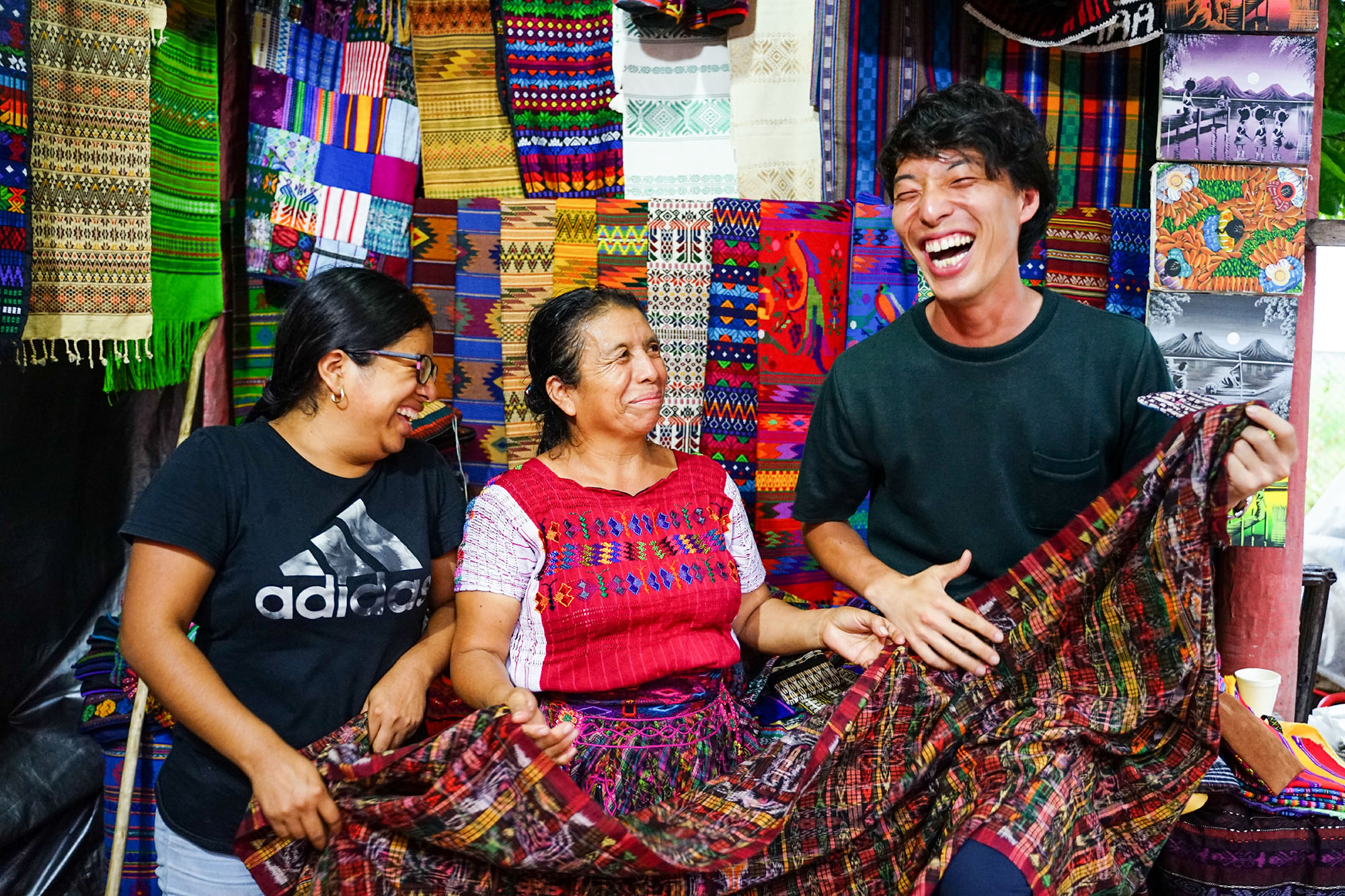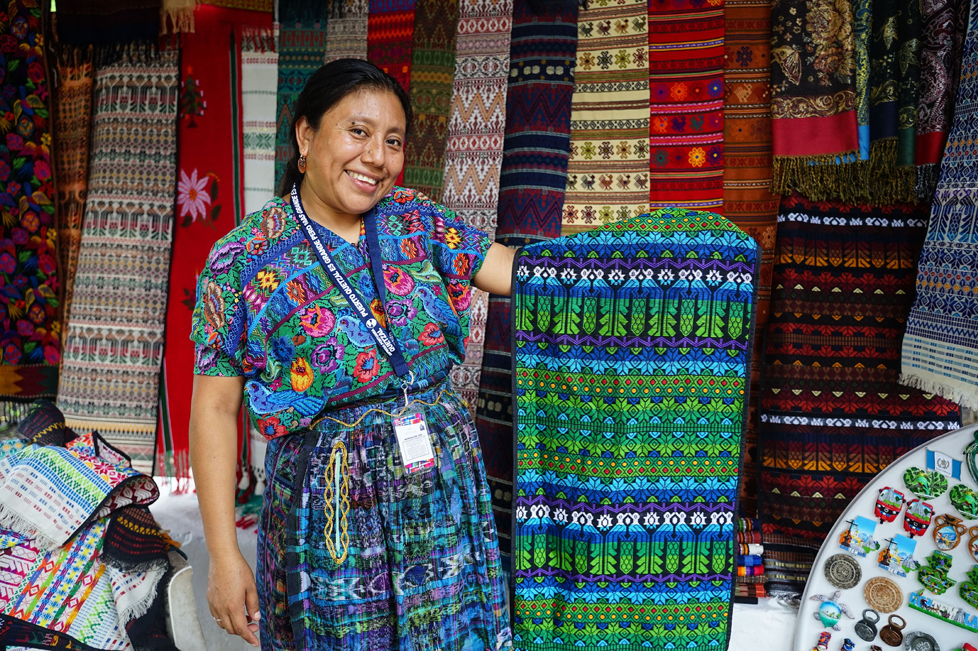 街には「グアテマラ・レインボー」という伝統的な織り方で模様の美しい織物を身に纏った人びとが目に留まります。