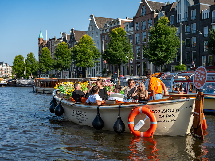 約90もの島々の間に1,300余りの橋が架かり、ゆるやかに運河が流れる“水の都”アムステルダム。運河に沿って並ぶ古いレンガ造りの家並み、次々と現れる橋には草花が飾られ道行く人を楽しませてくれます。そんなアムステルダムの歴史的な運河網と都市計画が評価され、世界遺産に登録されたのは2010年。運河クルーズでは「マヘレの跳ね橋」と呼ばれる木造の橋や、17世紀の商人の家々、豪奢な邸宅が連なる「黄金のカーブ」など、街の見どころを巡るツアーも人気です。美しい景観を優雅に水上から眺める、アムステルダムならではの体験が楽しめるでしょう。