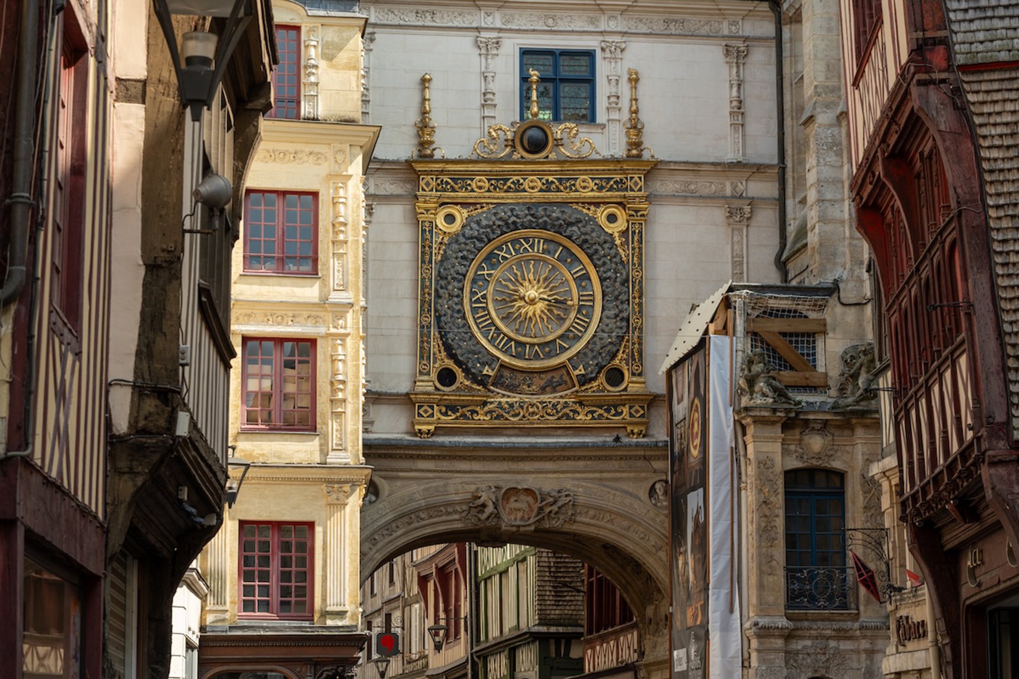 今も街の歴史を刻み続ける大時計。14世紀末に作られたオリジナルの機械装置も残る、ヨーロッパ最古級の仕掛け時計です。