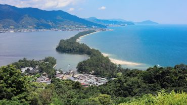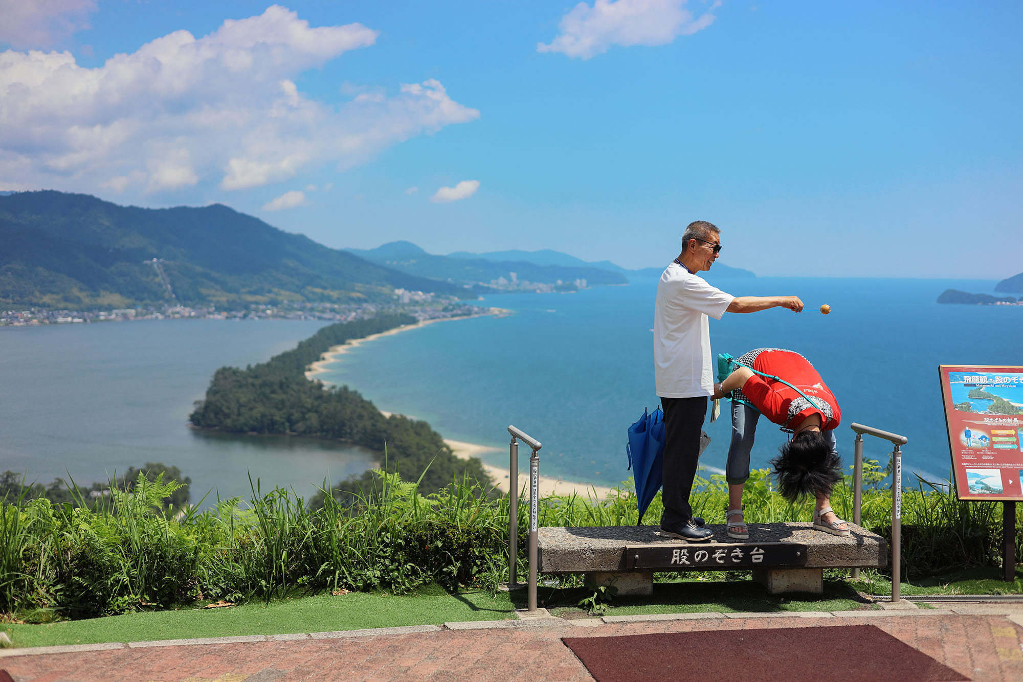 天橋立へ。「股のぞき」をして天橋立を眺めると、龍が天に舞うように見えるので「飛龍観」と呼ばれています。