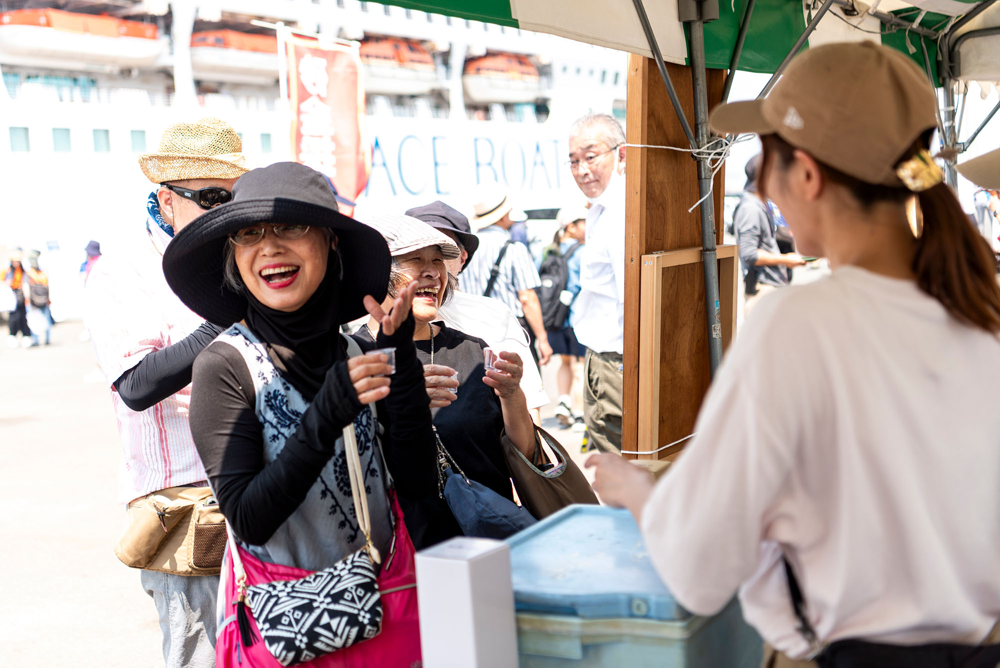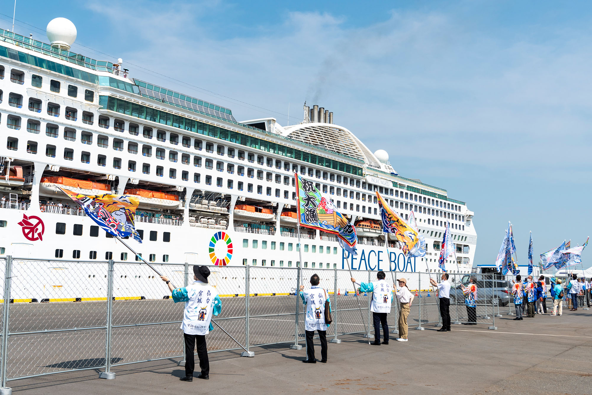 東日本大震災以来、石巻で災害支援を続けてきたピースボート。その繋がりから入港時、驚くほど盛大に出迎えていただきました。