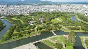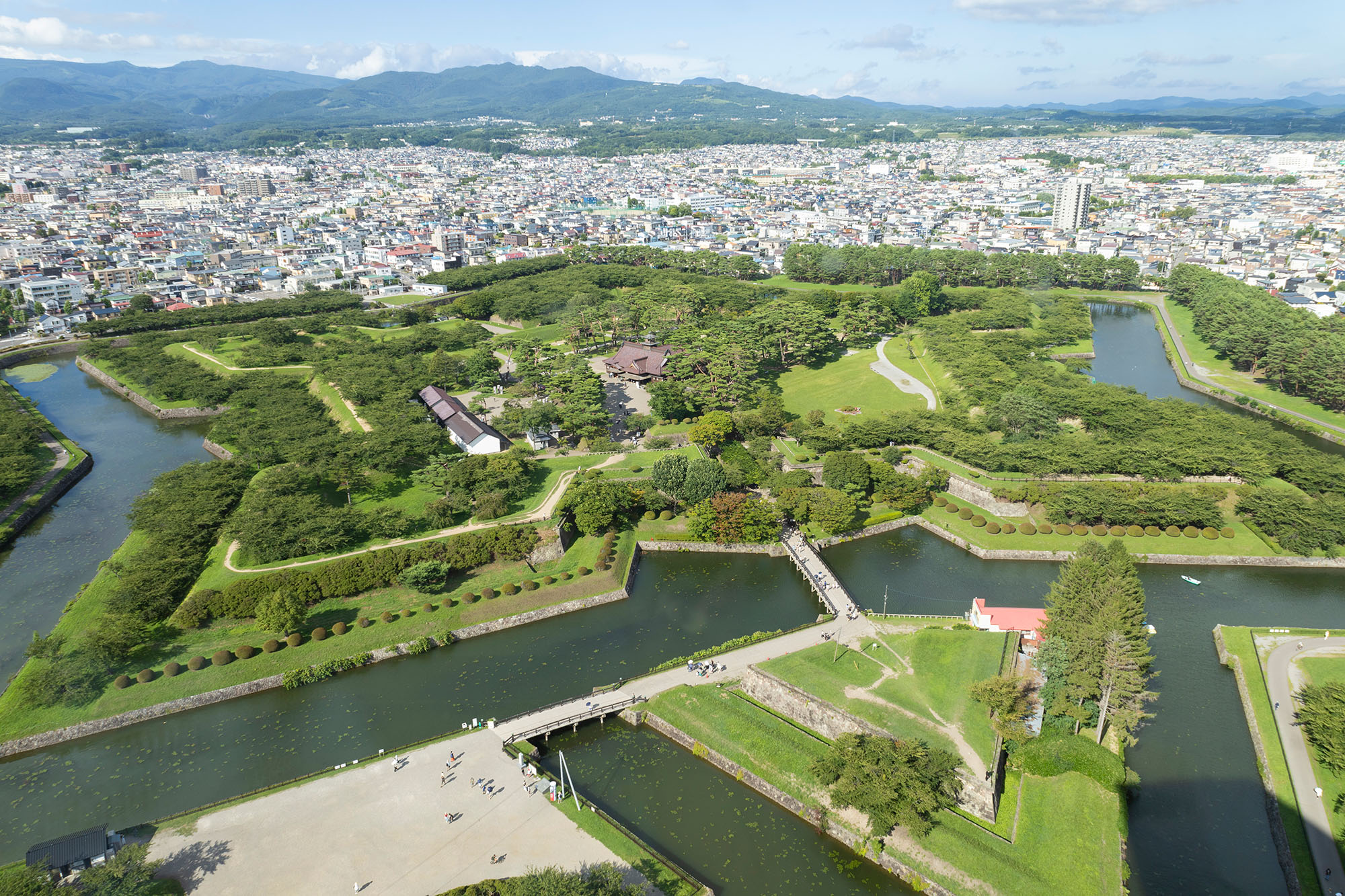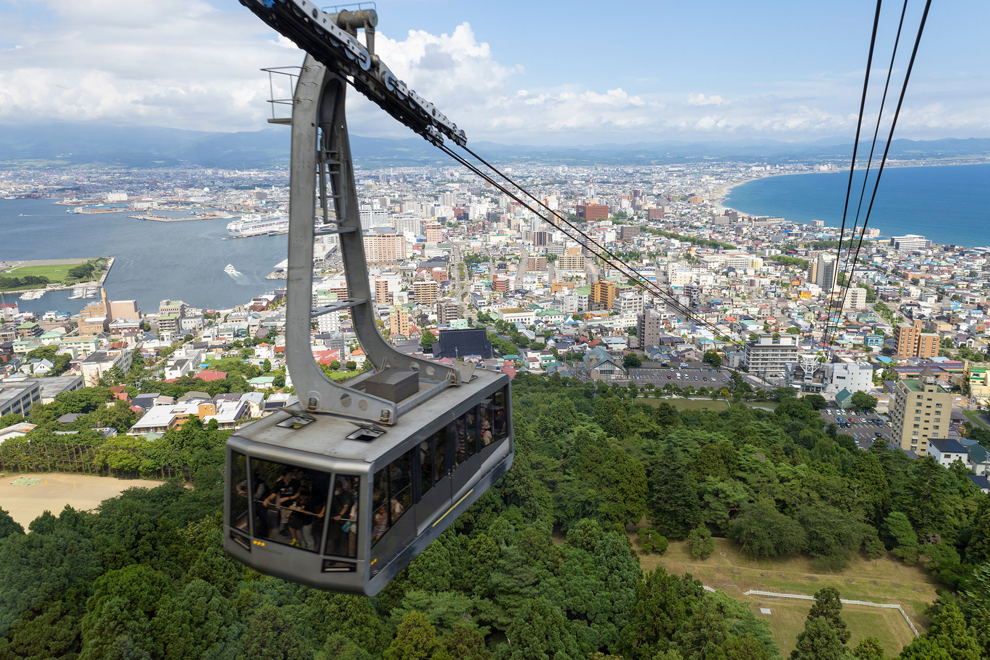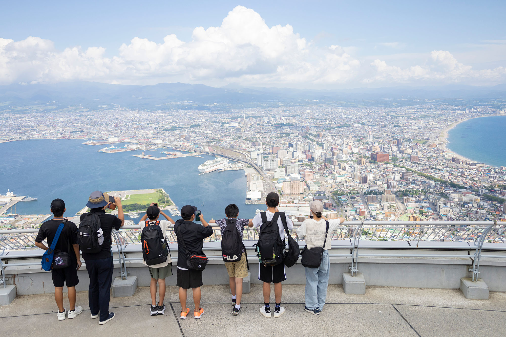 「100万ドルの夜景」として有名な函館山からは、日中にも遠くに連なる山々や函館の街並みを楽しむことができます。