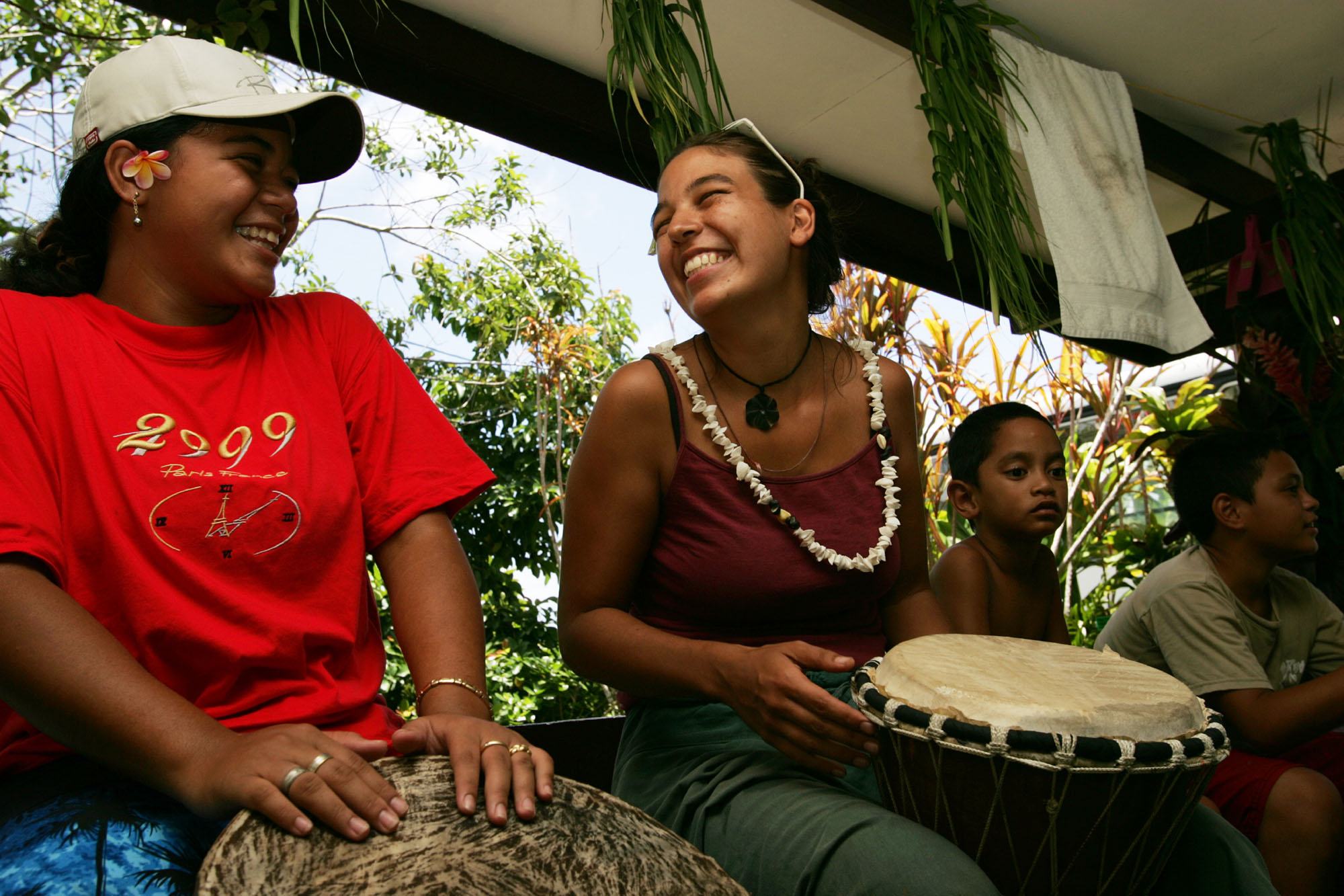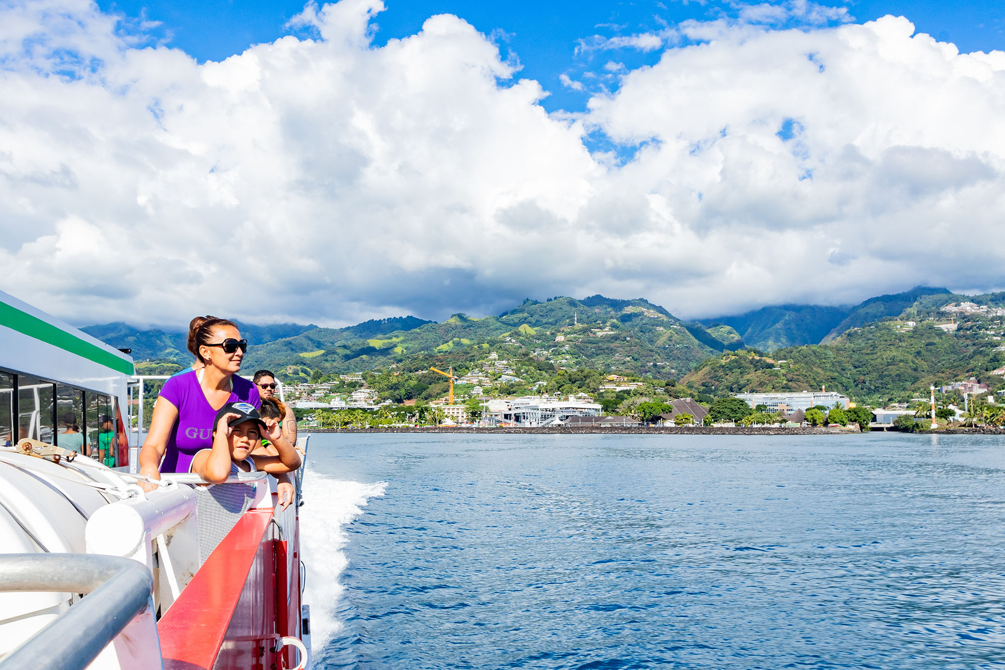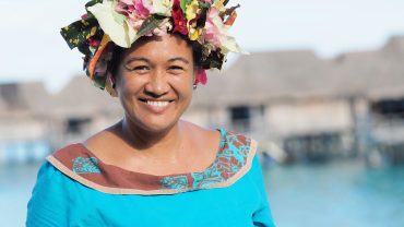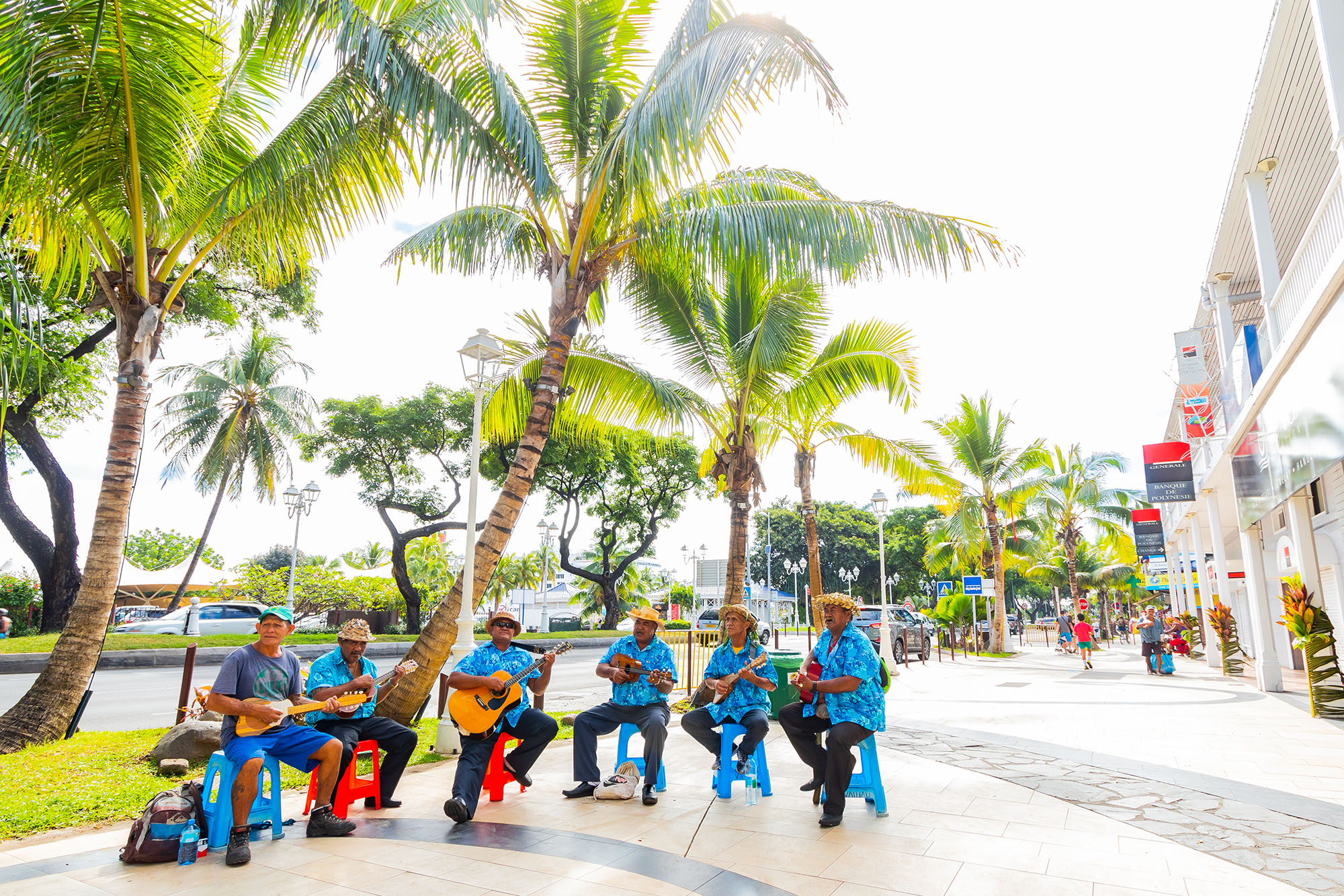 南国らしい、心地よい空気の流れるタヒチ。港へ降り立つと、地元の皆さんがタヒチアンミュージックで出迎えてくれます。