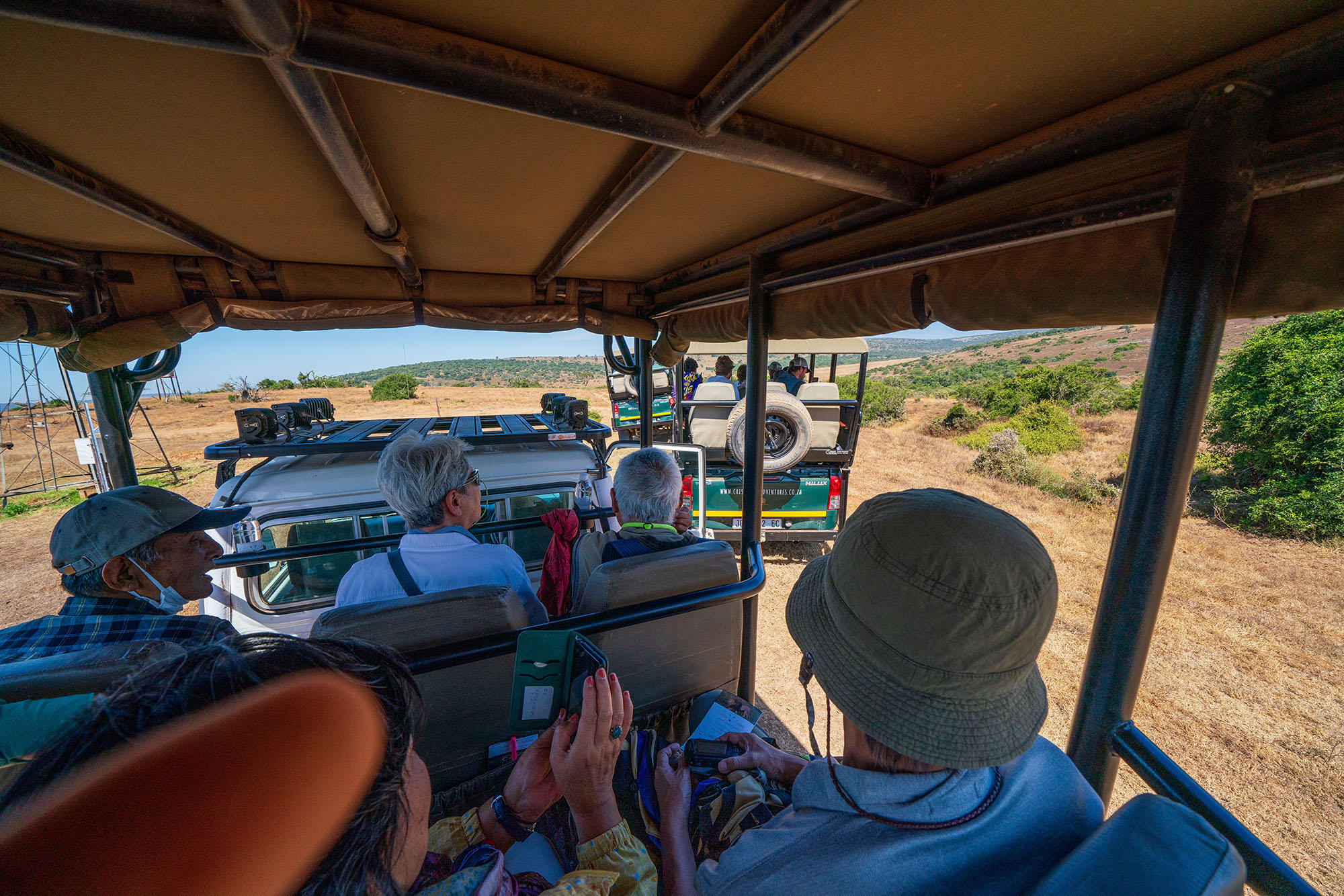 ガイドの運転でサファリを進みます。ガイド同士で情報交換をしながら、長年の経験と勘を頼りにサファリを案内してくれます。