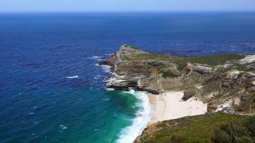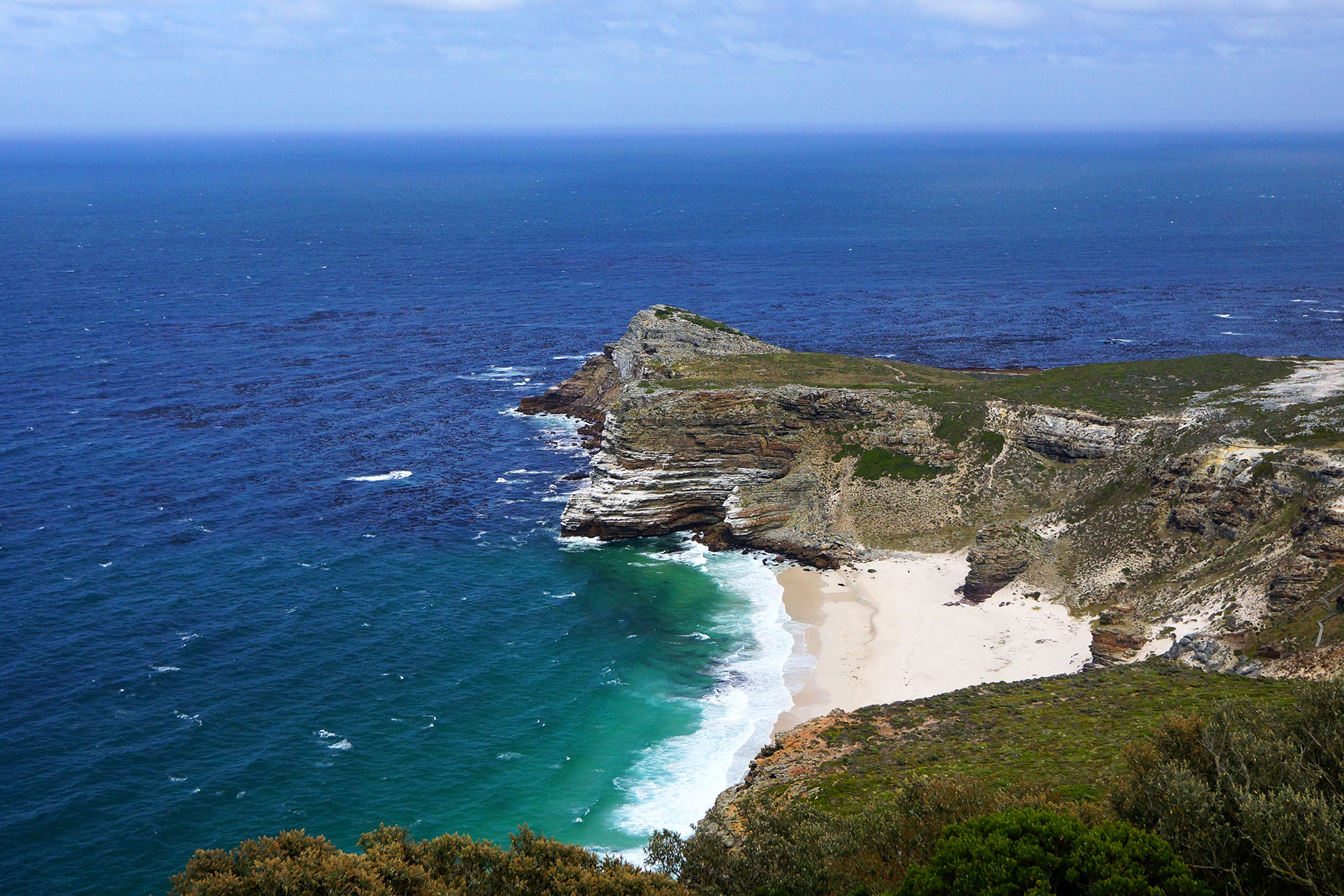 アフリカ大陸最南西端にあり、大西洋とインド洋の2つの大海が出会う「喜望峰」。岬にはそれを示す看板が立っています。