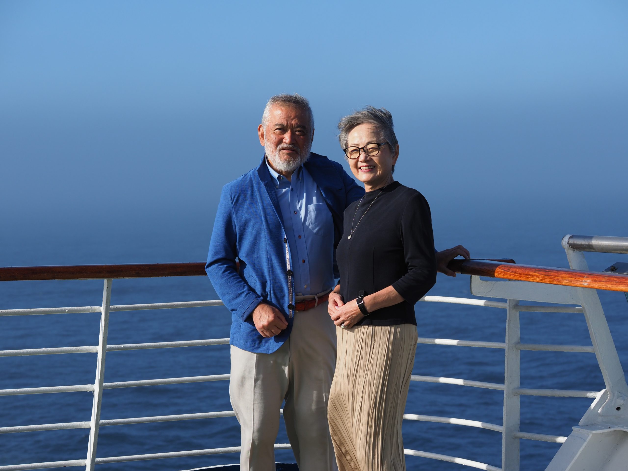 大谷賢二さん(72歳)は、ピースボートがきっかけで生まれた娘の宇宙(はるか)さんとツアーに参加しました。船内ではズンバや文化体験などを親子で楽しんだほか、賢二さんのライフワークである、カンボジアの地雷撤去や被害者救済のための活動に関する企画も開催。賢二さんが宇宙さんに自分の経験を共有できたのはもちろんのこと、お二人ともクルーズを通してさまざまな体験や交流をしたことにも喜びを感じられたそうです。