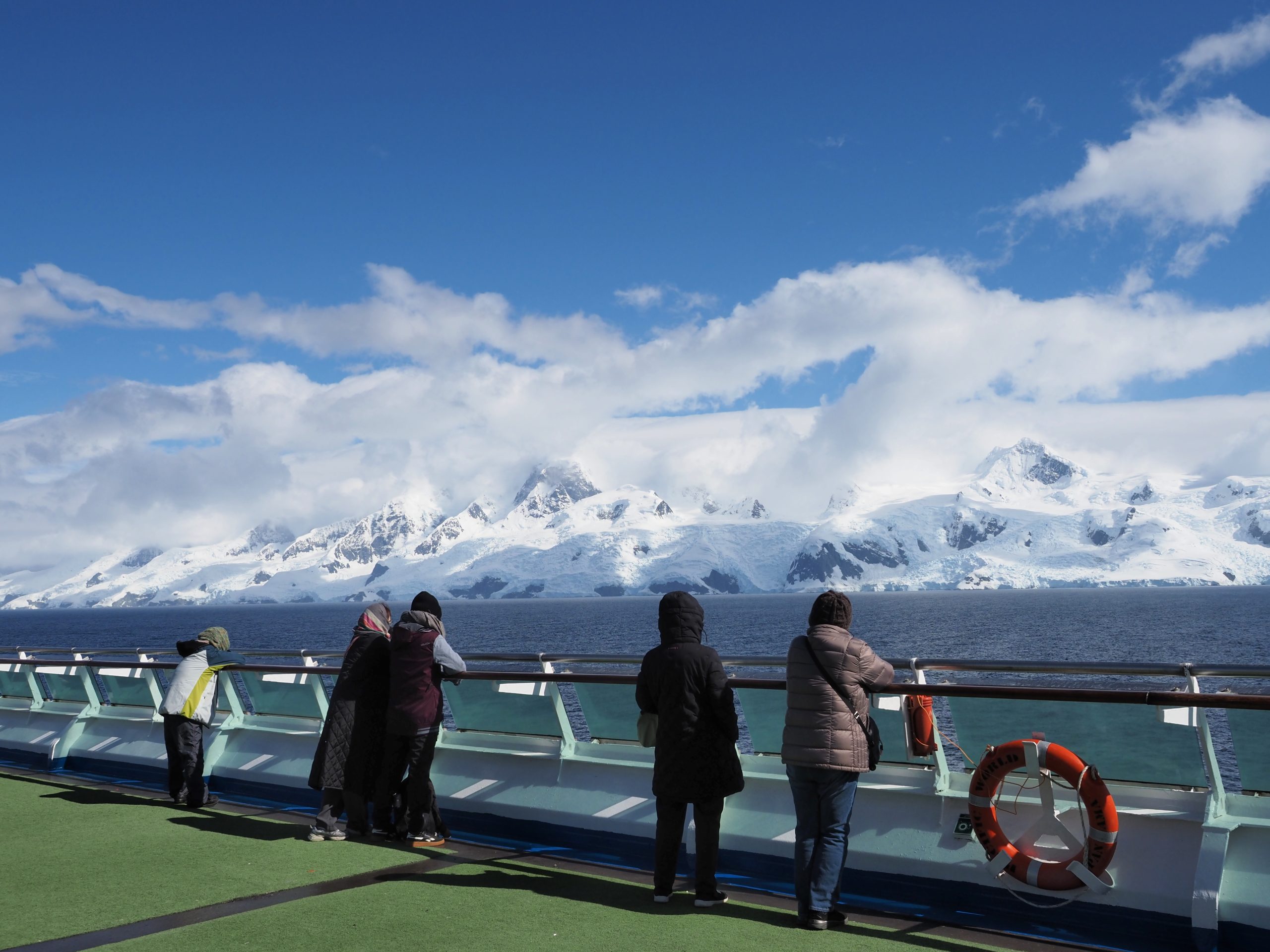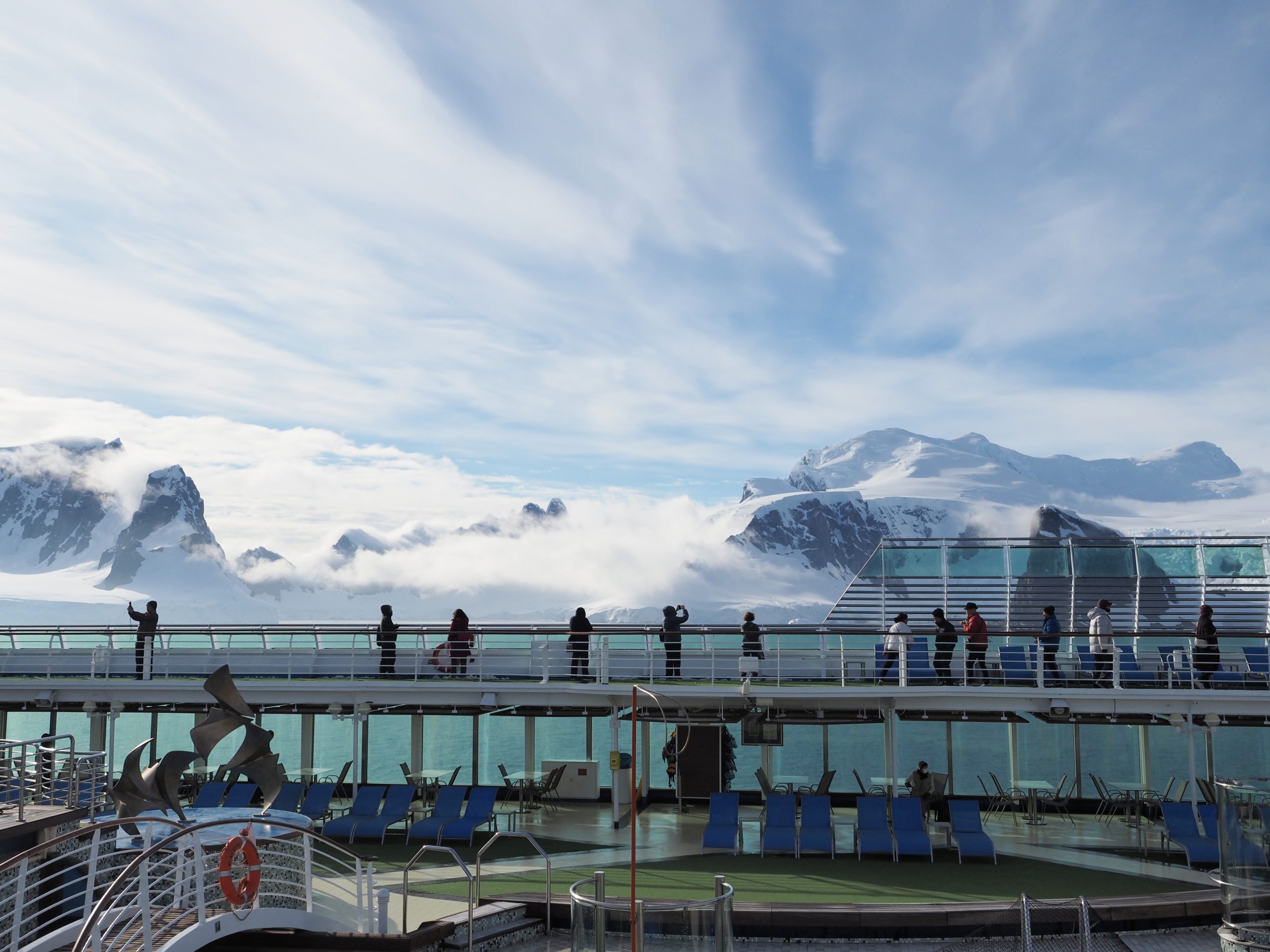 日本から効率よく南極へ行くには、クルーズツアーに参加するのがおすすめです。特に『パシフィック・ワールド号』の世界一周クルーズは、船旅ならではの出会いをはじめ、船内施設や身体を動かすアクティビティなどのプログラムが充実しており、航行中は思い思いの時間を過ごすことができます。