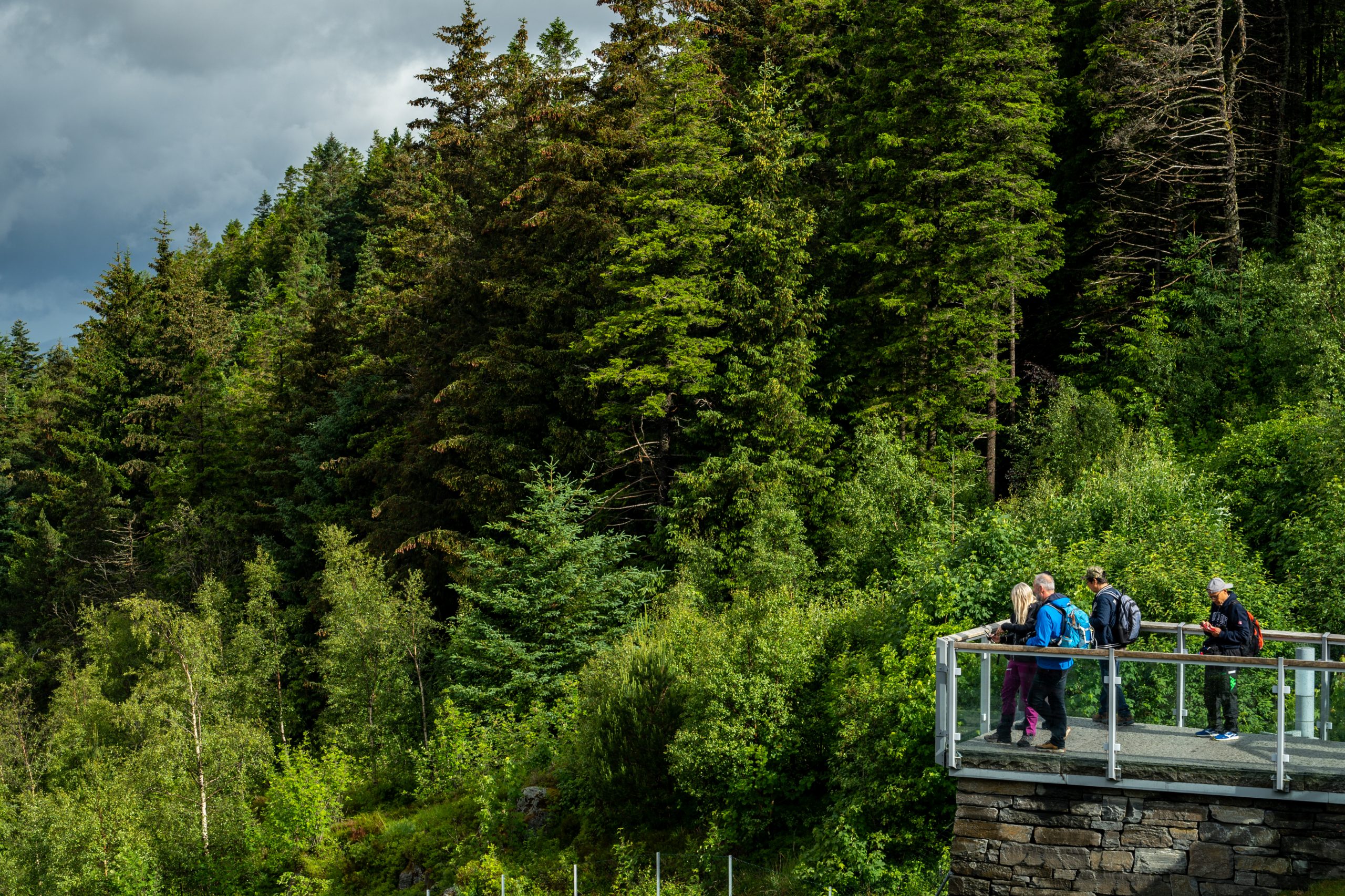 ベルゲン市街地の背後にそびえるフロイエン山は、標高320mの小高い山。山頂からはカラフルな街並みと港、ノルウェーの大自然を一望できます。
