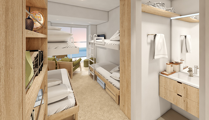 なるべく旅の予算を抑えたいという方には、3名様、4名様1室をシェアして使うタイプもおすすめです。ルームメイトがたくさんできて、クルーズライフの幅が広がります(出航時75歳未満限定)。