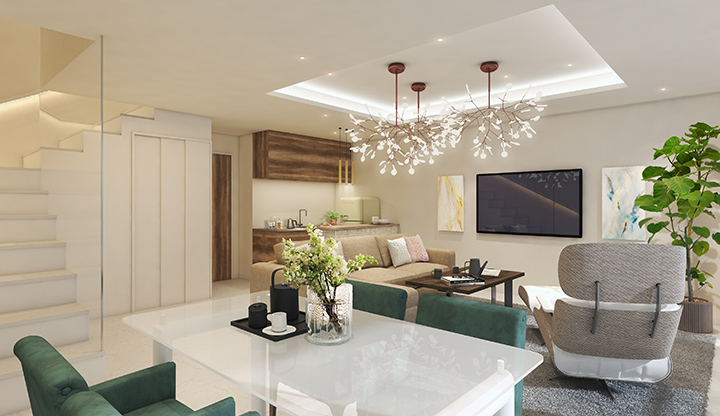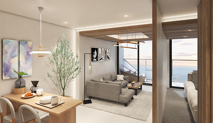 リビングルームとベッドルームが分かれた設計を取り入れ、広々とした居住スペースが贅沢な時間を演出します。
