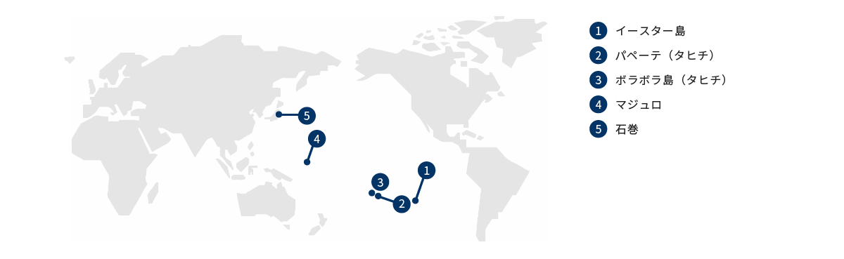 南国らしい、心地よく穏やかな空気が流れるタヒチ。船の寄港するタヒチ本島はもちろんのこと、かのポール・ゴーギャンも愛したモーレア島や”太平洋の真珠”と称されるボラボラ島など、訪れる先々で色鮮やかな景観と出会うことができます。先住民族の伝統農法を未来へとつなぐ有機農園を訪れ、ポリネシア伝統文化の継承に取り組む人びとと出会う文化体験ツアーも、ピースボートクルーズならではの交流プログラムです。