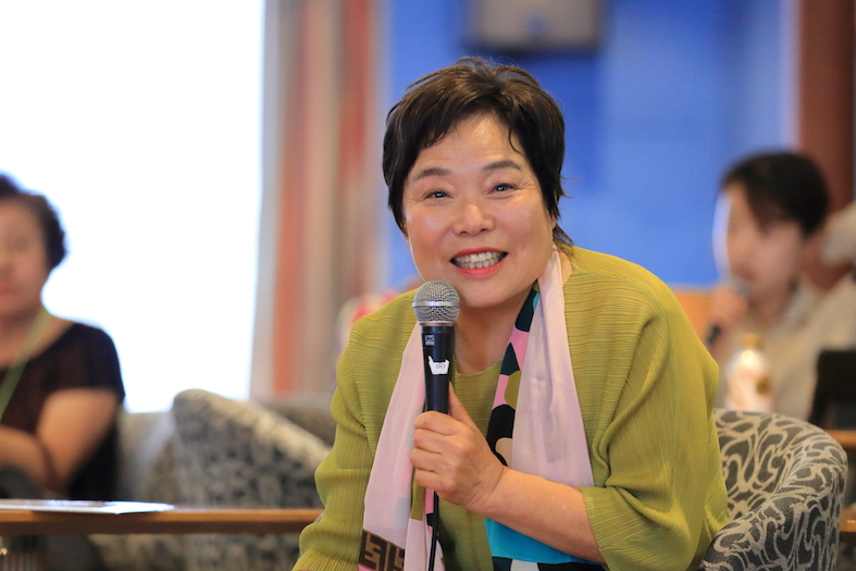 簡単な旅行会話からプロの通訳をめざす人まで、希望に沿ったカリキュラムで楽しく学べる語学教室を設立した水先案内人上村英姫さん(ワールド・エデュケーション・センター代表)。それだけではなく、料理好きが高じて料理教室や料理本も発行しています。 今日は、料理を通して交流を続けてきた上村さんに「英姫ママの幸せレシピ」と題して、さまざまな韓国料理を紹介してもらいます。会場に溢れかえった参加者を前に、「こんなに韓国料理の人気があるなんて」と驚きを隠せない上村さん。日本のスーパーでも手に入る材料で簡単に作れる特製レシピを熱心にメモをとる参加者の姿が目立ちました。