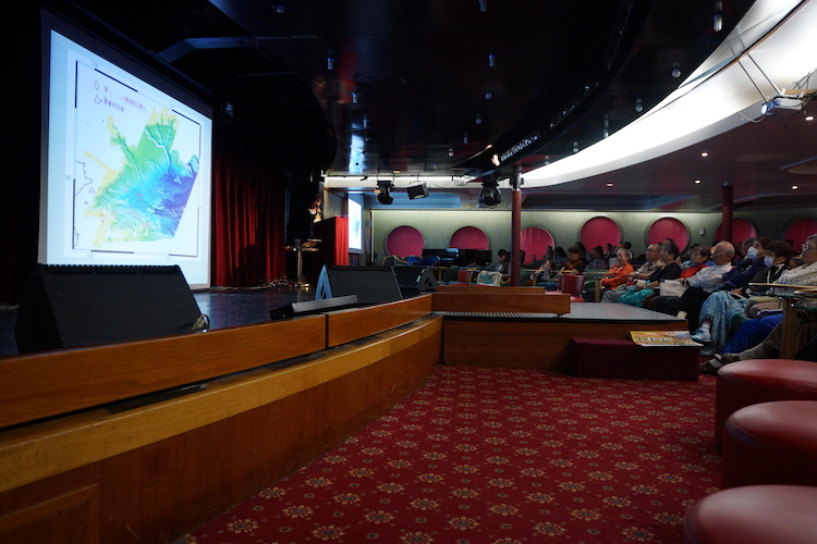 コタキナバルから本船に合流した水先案内人、ラフェンディ・ジャミンさんによる今クルーズ最初の講座。今では民主主義国家として知られるインドネシアですが、民主化までには14年間にも渡る長い過程があったそう。軍事政権や権威主義への抵抗運動や、国際社会からの政治や経済への様々な動きが民主化運動へとつながった歴史を、お話しいただきました。また、講座の後半では昨今のインドネシアにおける目覚ましい経済発展と、その裏側、そして今後の課題にも言及。インドネシアの歴史と今を知る、興味深い講座となりました。