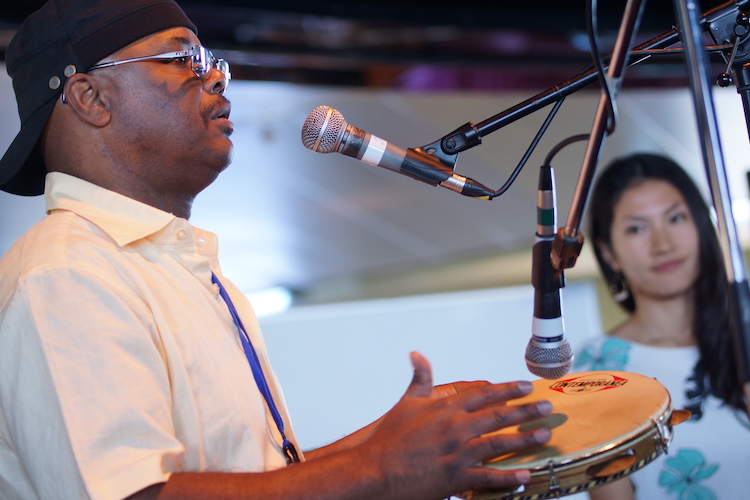 ケープタウンからこの旅に合流した水先案内人、サンバミュージシャンのフランシス・シルバさんによるトーク&ライブショーが開催!!17歳からプロの音楽家として活動するフランシスさんは、なんと、あの「浅草サンバカーニバル」の生みの親!それゆえ、”日本におけるブラジル音楽の父”と呼ばれることも。打楽器を自由自在に操る姿は、フランシスさんの「身体ぜんぶが楽器」と言ってもいいくらいです。サンバはもちろん、ボサノバやジャズなども披露。最後は会場の参加者に自作の打楽器を配りみんなで演奏。音を奏でる楽しさを伝えることも忘れません。洋上でサンバブームが起こること、間違いありません!