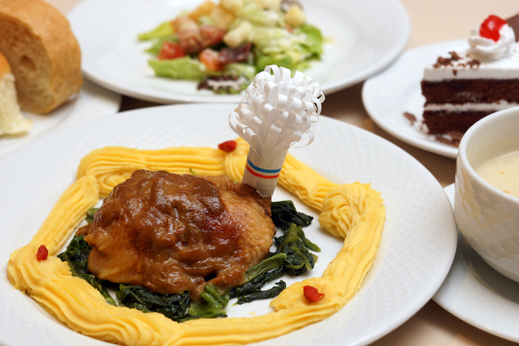 船上のクリスマス——船内には随所にクリスマスツリーが登場。クリスマスムードを盛り上げています。オーシャンドリーム号は赤道付近を航行中。大海原の真ん中、半袖で迎えるクリスマス、これも船旅ならではの体験です。夜のレストランではクリスマスディナーが振る舞われました。メニューはもちろんローストチキン、そしてクリスマスケーキ!「去年は一人でカップラーメンすすってたなぁ」とチキンを前に感慨深げに呟く若者。「船に乗れて本当に良かったね!」とご年配の方から声をかけてもらって、満面の笑顔で頷きます。船上のクリスマスは多くの参加者にとって、思い出深い1日となったよう。