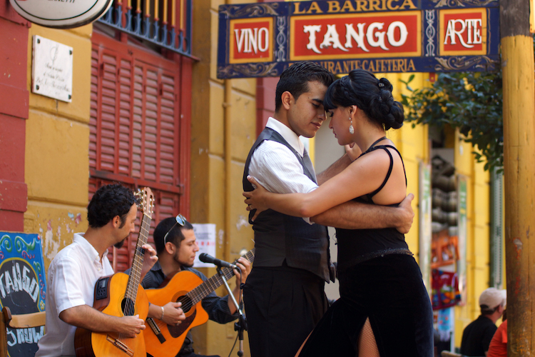 地球一周の船旅はブエノスアイレスに寄港、この街の見どころは”南米のパリ”とも称されるカラフルで美しい街並みです。訪れたのは、ブエノスアイレスきっての観光エリア「ボカ地区」。19世紀の終わり頃、たくさんの移民で賑わうボカ地区で生まれたのがタンゴです。街には今もたくさんのタンゴ・ハウスがあるのはもちろん、こうして街角でタンゴを披露する姿を見かけることも。カフェでちょっと一休み。落ち着いた雰囲気で何ともオシャレです。壁に飾られたたくさんの絵や写真にも興味津々。美しい街並みといい、陽気なタンゴといい、何気ないのにオシャレなカフェといい……本当にセンスのいい街です。