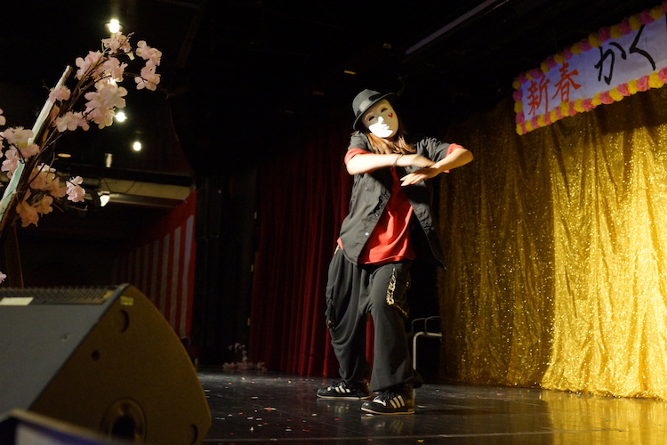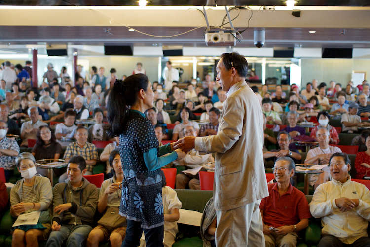 ラウンジで行われたのは「新春かくし芸大会」です!まずは和服姿のピースボートスタッフがステージにあがり、新年のご挨拶。さあ本番の始まり。ステージにあがったのは10組の芸達者さん。もちろん全員たまたまこの船に乗り合わせた参加者の皆さんです。写真は、キレのあるダンスを披露した、まどぅーさん。素晴らしいダンスで会場を一気に引き込みます。他にも沖縄民謡やマジック、モノマネ等々、個性豊かな芸の数々が次々に披露されます。最後はお約束の記念撮影。2013年の初笑い、初ビックリ、初感動——。それぞれに思い出深い企画となりました。