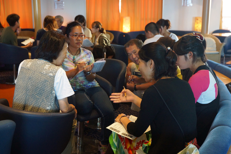 今クルーズでの最初の寄港地・台湾で、長年原発の反対運動を続けている台湾緑色公民行動連盟で活動する水先案内人、王舜薇さんの講座が行われました。日本はもちろん、今、世界の重要なトピックとなる原発とエネルギーの未来に、大きな注目が集まります。原発のリスクが、「安全」や事故への「確率論」で語れないものであることを知る私たちにとって、隣国・台湾の原発問題は決して他人事ではありません。王さんが講座の締めに持ってきたのは、「私は核のない世界を望みます」というシンプルなメッセージ。日本のみならず海外へと目を向け、原発とエネルギーについて考える講座となりました。