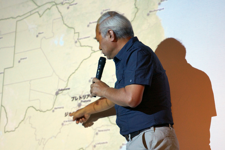 ポートルイスから本船に合流した水先案内人・福島康真さんによる今クルーズ第1回目の講座がありました。1980年代から、南アフリカのアパルトヘイト(人種隔離政策)反対運動に携わり、南アフリカのNGOに就職した福島さん。今回の講座では南アフリカの歴史と現在についてお話しいただきました。ヨーロッパの”進出”から植民地支配、そしてアパルトヘイト政策が生まれた背景や、その影響・弊害などを解説。この歴史が、アパルトヘイト撤廃から20年を迎えようとする今なお解決できない貧富の差を生み出したと言います。改めて知る南アフリカの歴史と、そこから続く今を知る、大切な時間となりました。