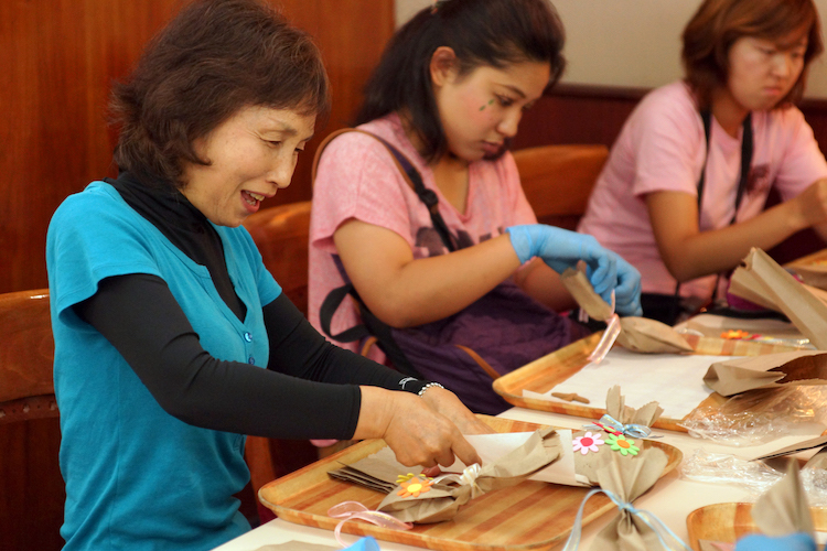 2月14日はバレンタインデー。イベント大好きな船内ですから、もちろんみんなで楽しみます。参加者からの「手作りお菓子を贈りたい」という声に応えて、メインレストランではクッキー作りを行いました。レストランはクッキーの優しく香ばしい香りでいっぱい。つまみ食いしたい気持ちをぐっと抑えて、最後の仕上げ、ラッピングです。リボンをかけたり、お花のシールを貼ったり……。皆さん、どなたにプレゼントするんでしょう?来る14日が待ち遠しいですね。