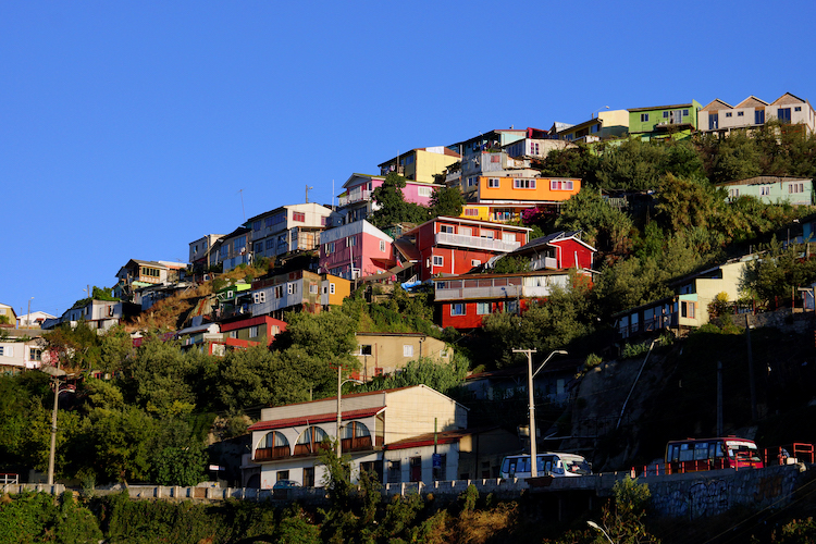 オーシャンドリーム号は、チリ最大の港町バルパライソへと入港しました。美しい街並みが続くこの街は、2003年、その歴史的価値が認められユネスコ世界遺産に登録されました。風合いのある街並みと、その合間をゆく緑色のトロリーバス——どこかホッとするような、やわらかな風景が続きます。丘の上には赤や黄色、ピンクに彩られた鮮やかな家々が並びます。バルパライソ湾から伸びる細長い平地に並ぶ歴史的建造物とこの丘の家々。その対比が私たちの目を楽しませてくれます。丘の上へは「アセンソール」と呼ばれるケーブルカーで。情緒ある美しいバルパライソの街は、どこを切り取っても絵になります。