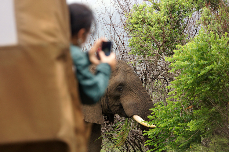 地球一周の船旅はいよいよアフリカ大陸へ!南アフリカ東海岸に位置するダーバンに寄港しました。ここからは、野生動物と出会うゲームドライブへ。9人乗りのジープに乗り込み、サファリへと繰り出します。期待いっぱいで車を走らせると、ほどなく無線から「ライオン!」の声が。草原を悠然と歩くライオンと出会いました。感動さめやらぬまま、ドライバーさんに「ゾウやキリンは?」と尋ねると「OK!」と快諾。他の車からの無線情報を頼りにジープを走らせると、目前にゾウ!至近距離で見る大きく雄大な姿に、夢中でシャッターを切ります。アフリカの大自然を存分に味わう1日となりました!