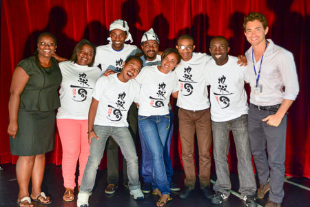 アパルトヘイト下の南アフリカで、黒人の子どもたちに将来への夢や目標を与えようと生まれた音楽グループ「アフリカン・ユース・アンサンブル(AYE)」。今宵行われたのは、AYEの活動支援を目的としたチャリティーオークション。その”賞品”は、「今日の本船航路図(世界で1枚だけ!)」「バイーアラウンジ3時間貸し切り・カラオケ歌い放題」など、ピースボートらしいユニークなものばかり。オークションの売上げは全額、AYEへと送金されます。次々とあがる入札の声にAYEメンバーの皆さん、笑顔。そして後半は「こんなに、盛り上げてもらえるなんて……」とうれし涙。大いに盛り上がる楽しい夜になりました。