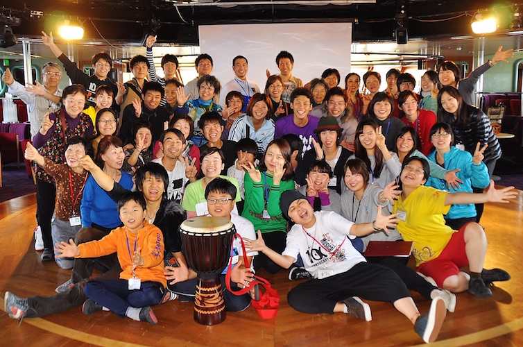 ピースボートと、韓国のNPO「環境財団」が共にコーディネートする今クルーズ。日韓からそれぞれ450名ほどが乗船しています。その中には、日本に暮らす韓国籍・朝鮮籍の方々、いわゆる「在日コリアン」と呼ばれる人びとも多く乗船しています。こちらはそんな彼らが、在日コリアンについて紹介する自主企画。フリースペースにはたくさんの参加者が集まりました。共に生きる、違いを認める——言葉にすれば簡単ですが、実践するのは難しいこと。同時に、この企画がその一助になると感じた方も多かったよう。多くを学び、考える時間となりました。