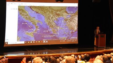 次の寄港地であるランカウイ島から日本までの航路などが紹介された「航海の雑学」は、今回が最終回です。お馴染みの講座とあって多くの方が参加し、時折メモを取りながら熱心に聞き入っていました。