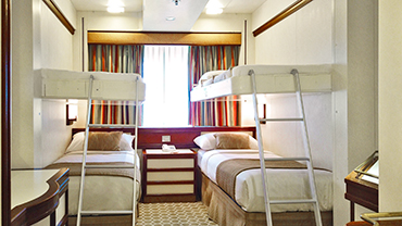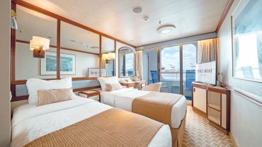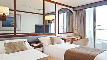 - A1、A2、A3、A4クラスは船室指定が可能です(船室指定後に旅行契約を解除なさる場合、船室指定取消料として旅行代金の5%を申し受けます。ただし、90日前以降は旅行条件記載の取消料に準じます)。