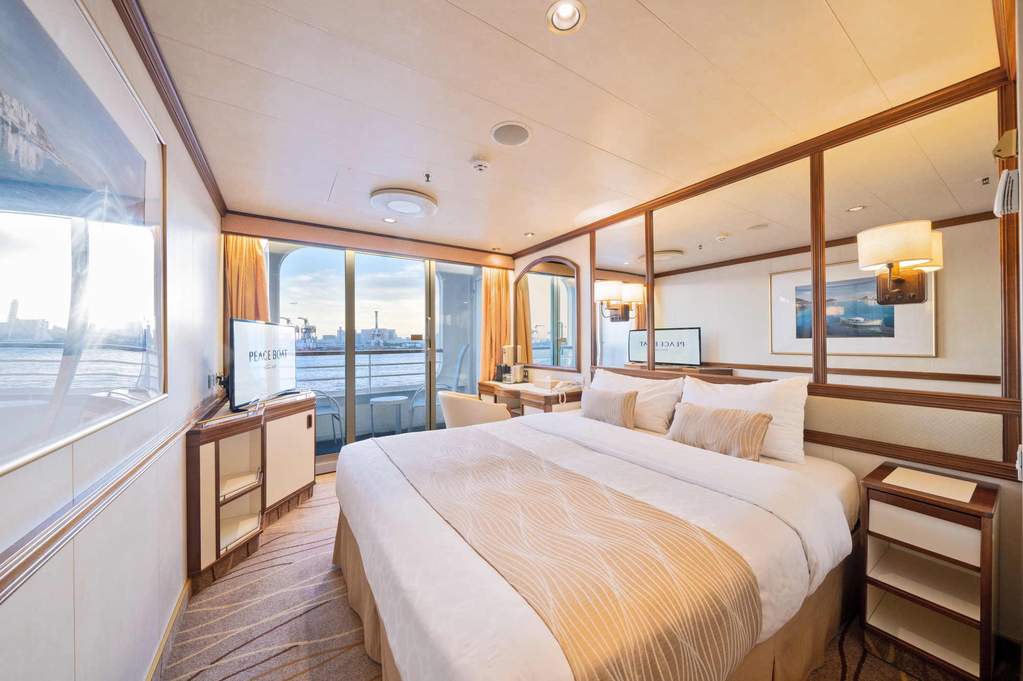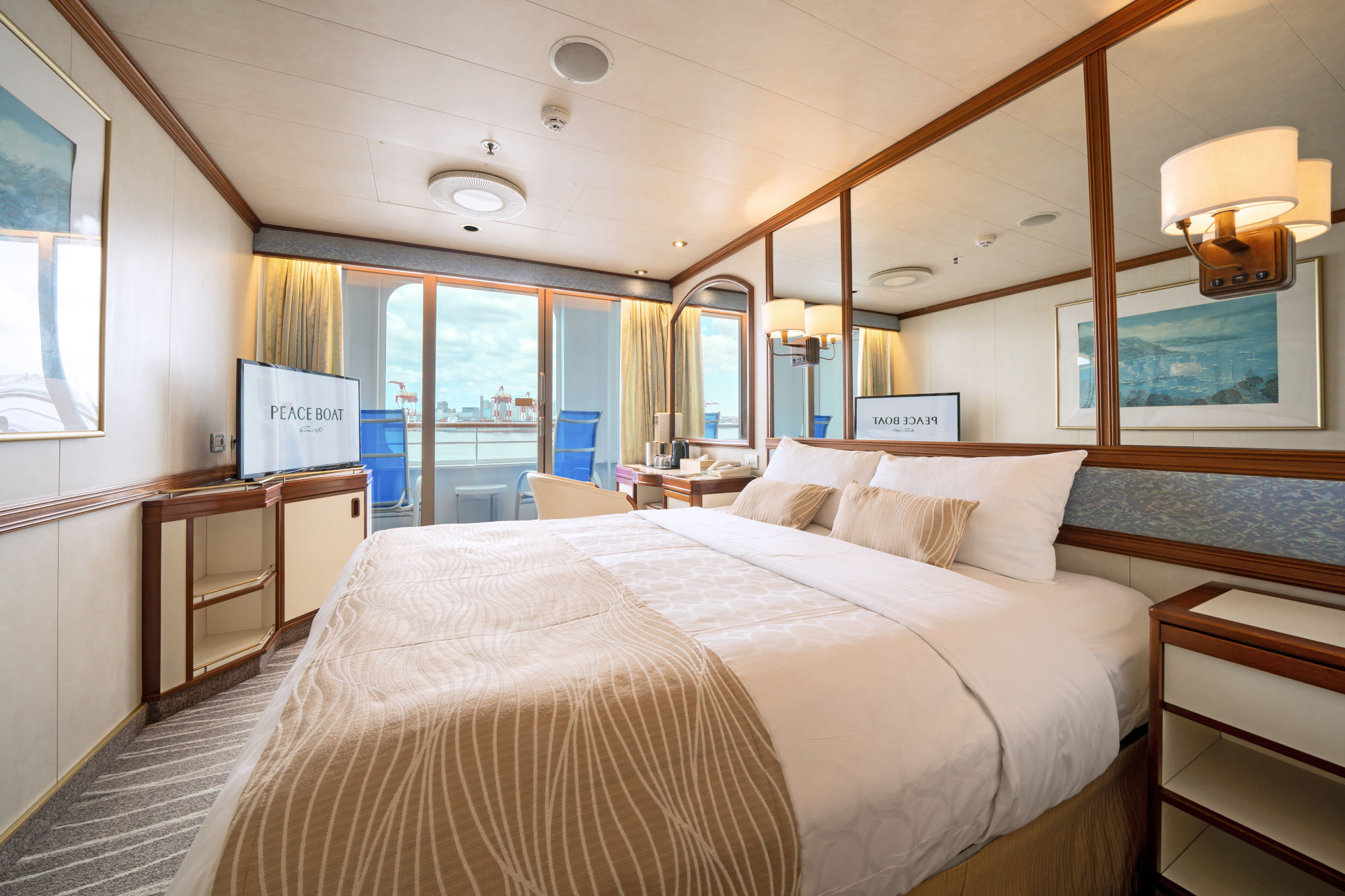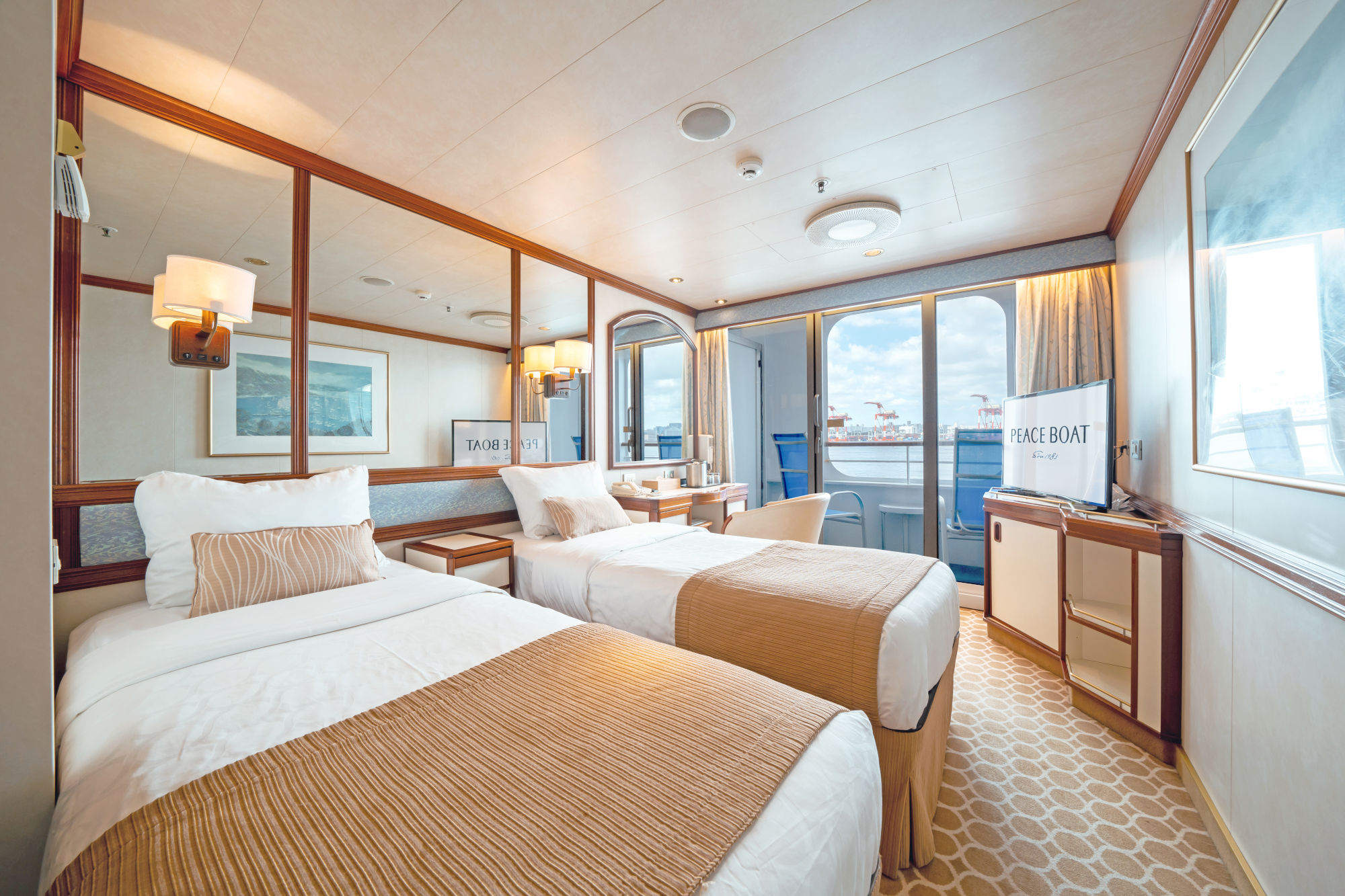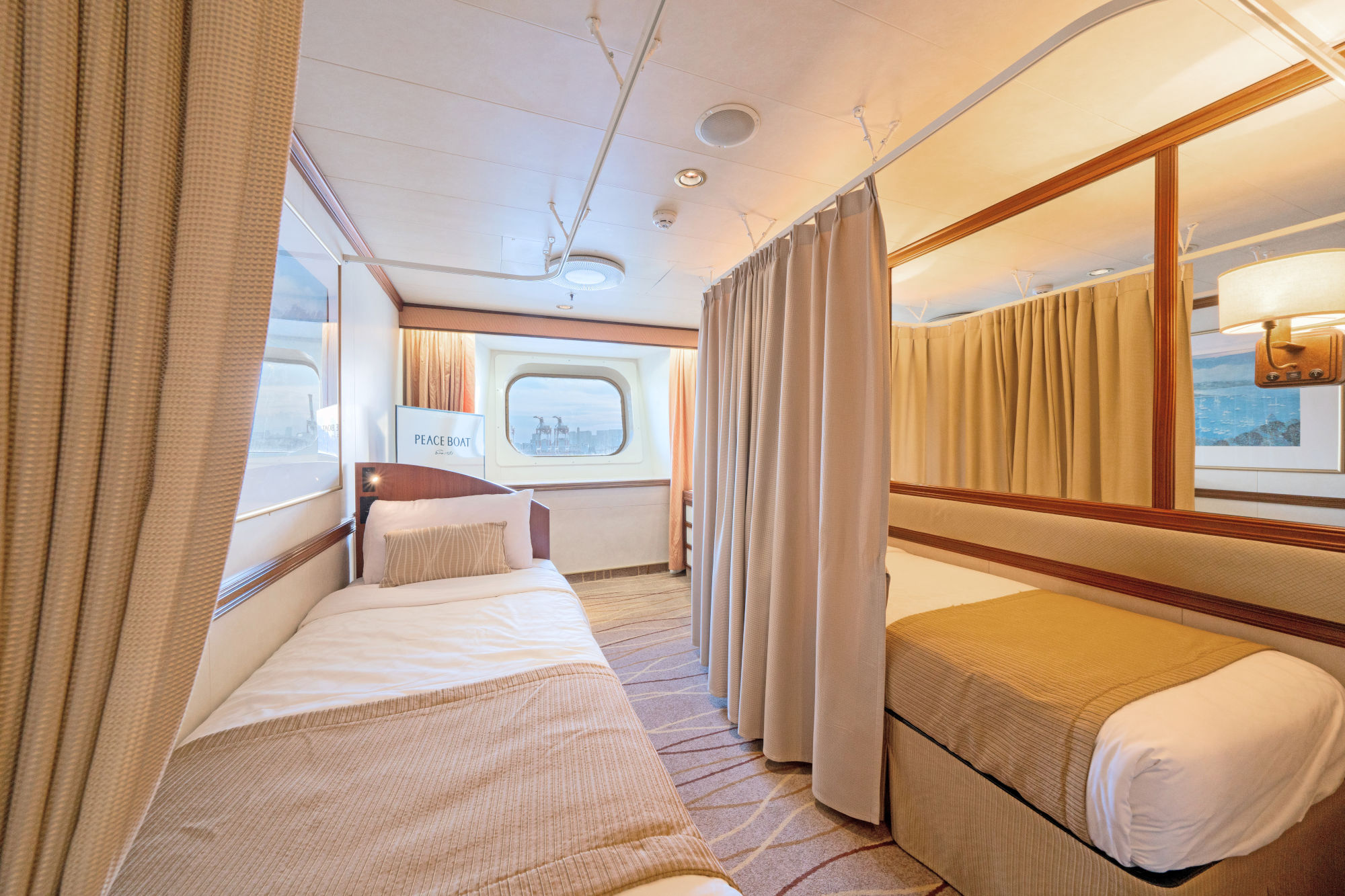 お一人で参加される方でマッチングし、ペアタイプの船室をシェアしてご利用いただけます。バルコニー付きや大きな窓が付いた船室など、旅のプランに合わせてお選びください。