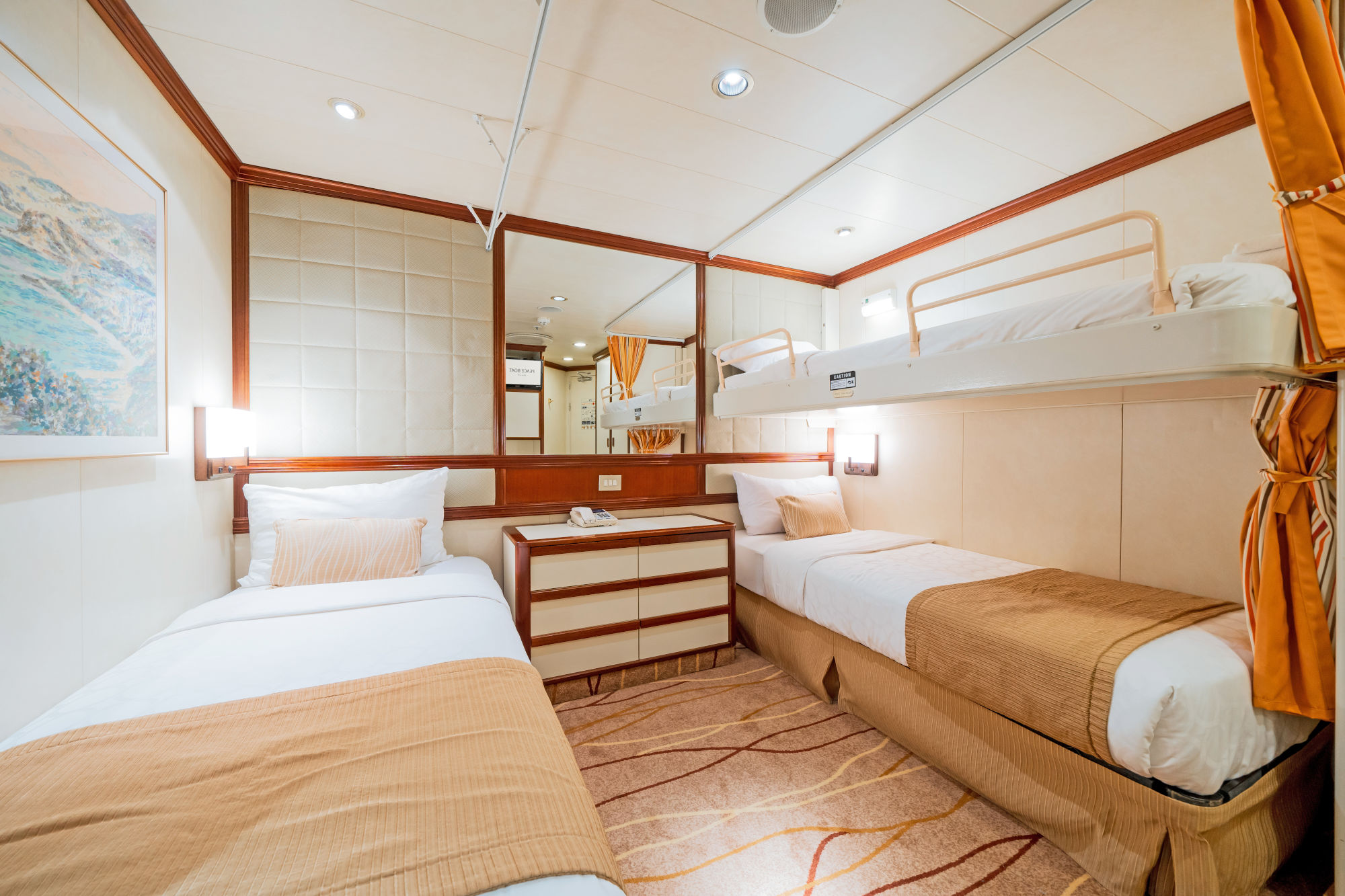 なるべく旅の予算を抑えたいという方には、3名様、4名様1室をシェアして使うタイプもおすすめです。ルームメイトがたくさんできて、クルーズライフの幅が広がります(出航時75歳未満限定)。
