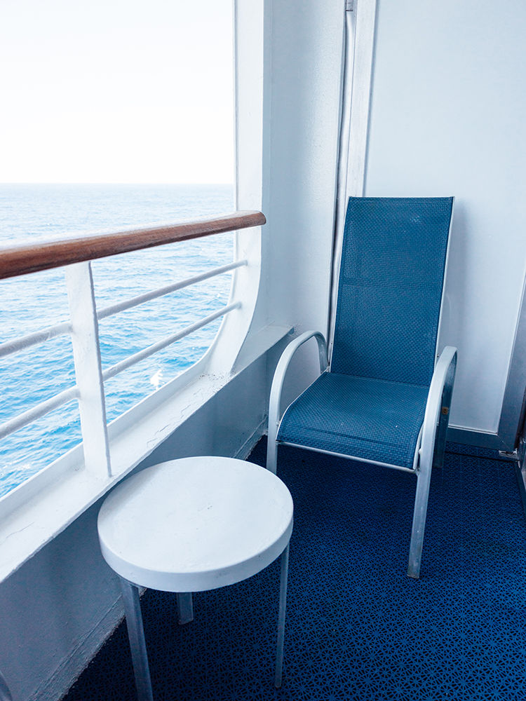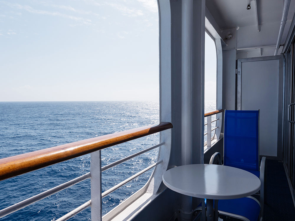 プライベートバルコニー付きの船室で、ゆったりとした時間をお過ごしください。