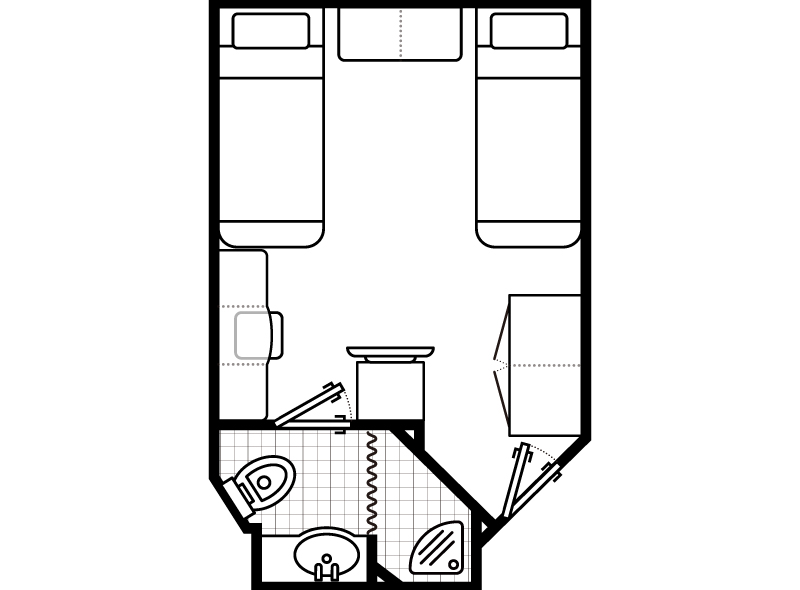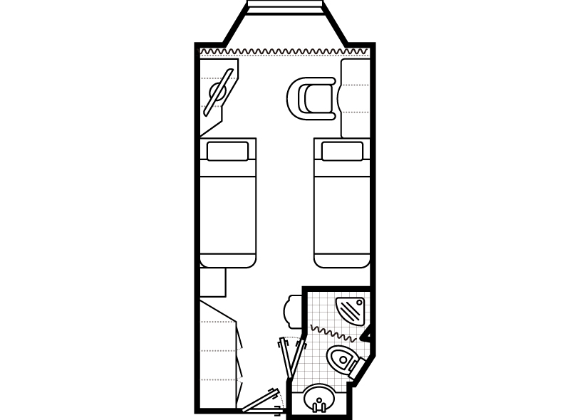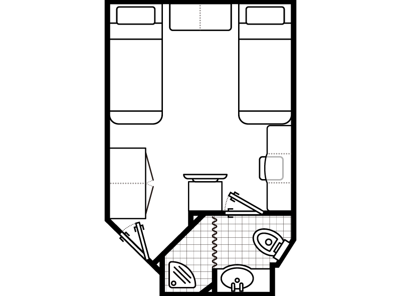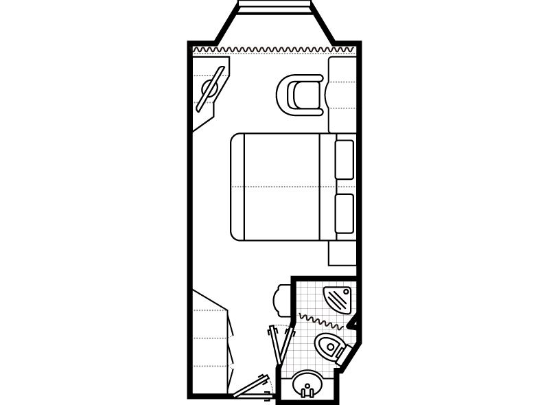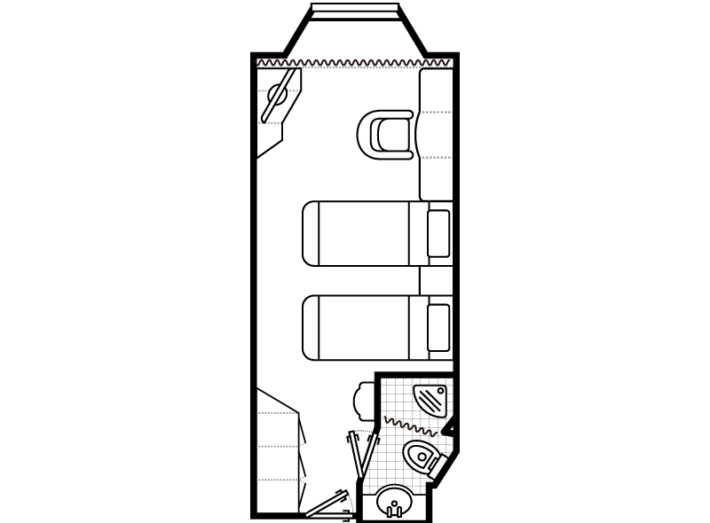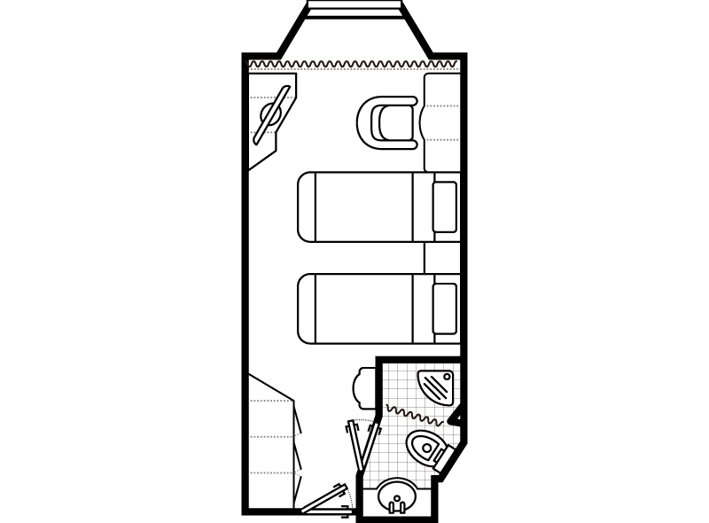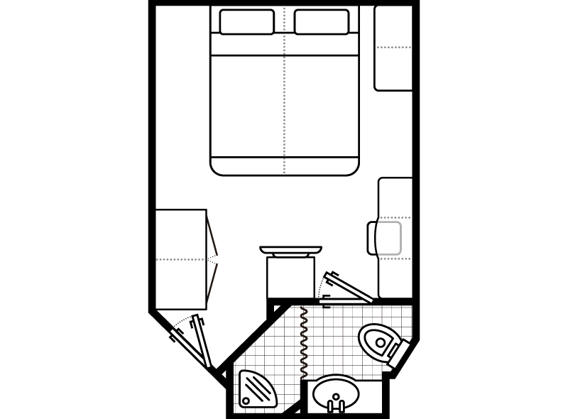 ご自身だけの空間で、ゆったりとした旅の時間をお過ごしいただける船室です。(アウトサイドⅠとアウトサイドⅡはフロアが異なります)