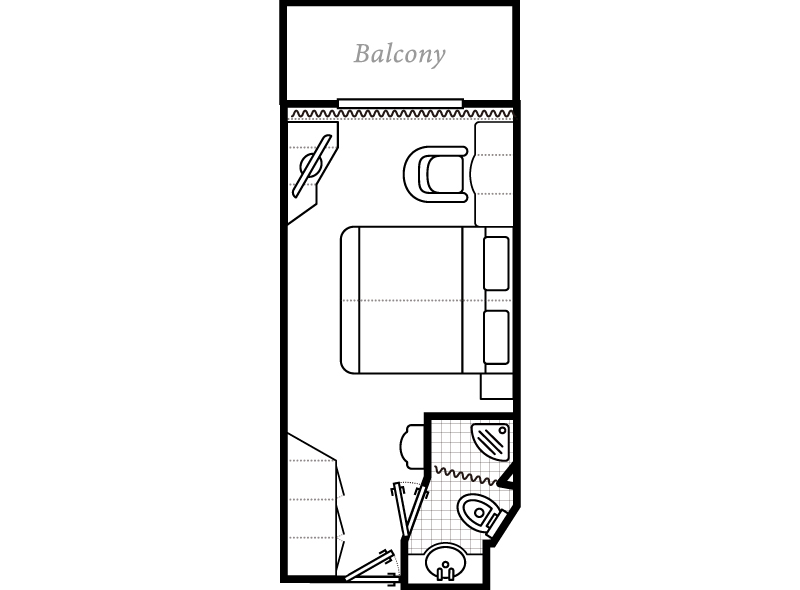 プライベートバルコニー付きの船室を、リーズナブルな代金でご利用いただけます。(バルコニーⅠとバルコニーⅡはフロアが異なります)