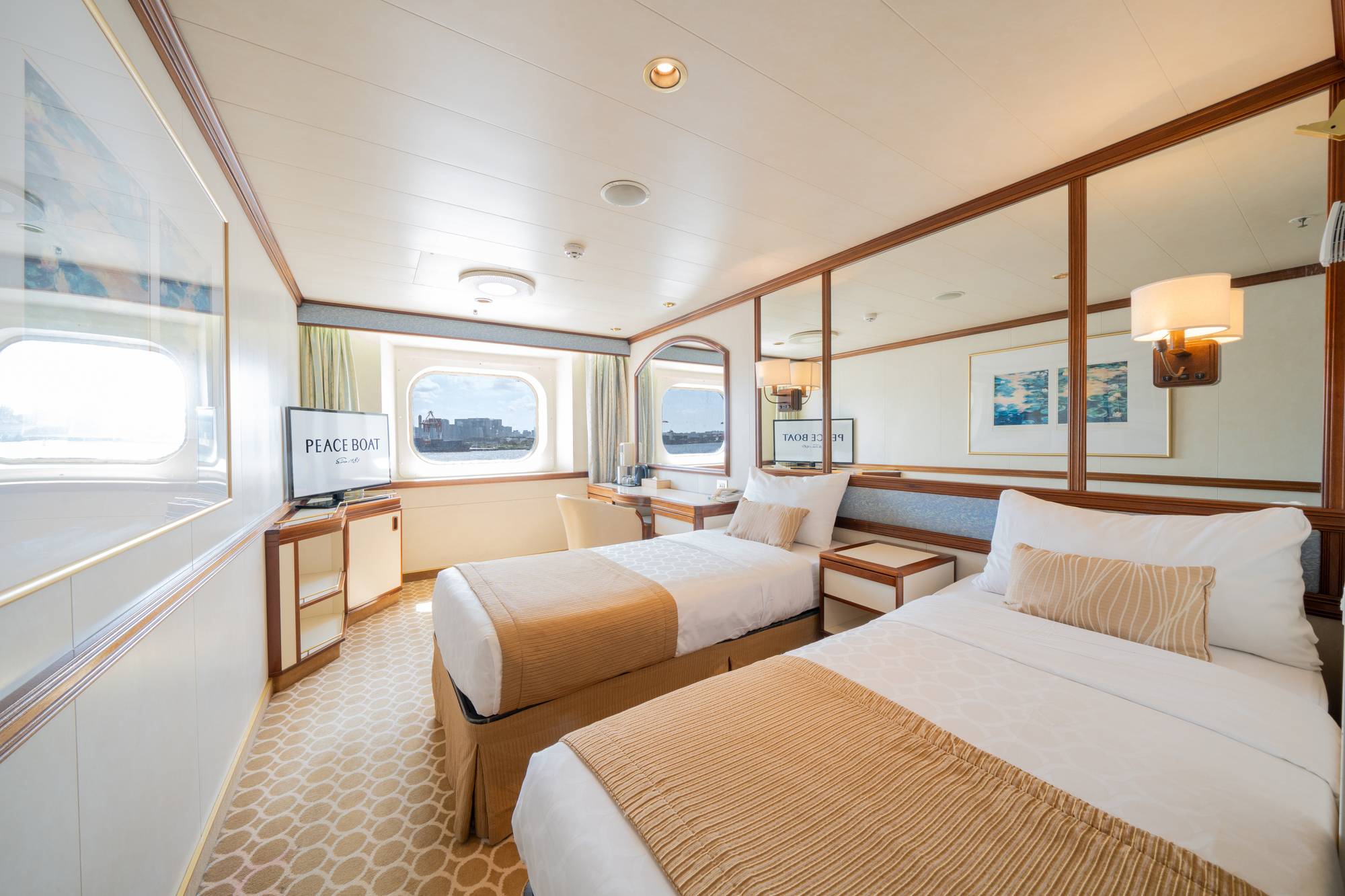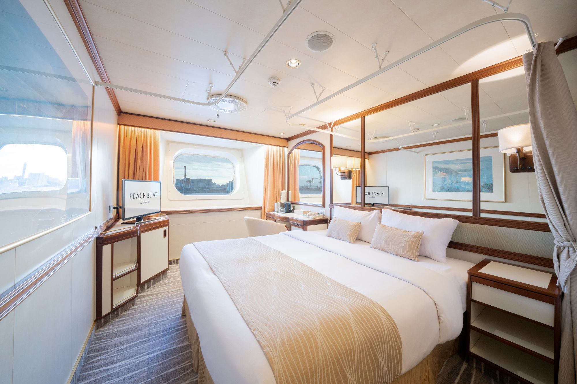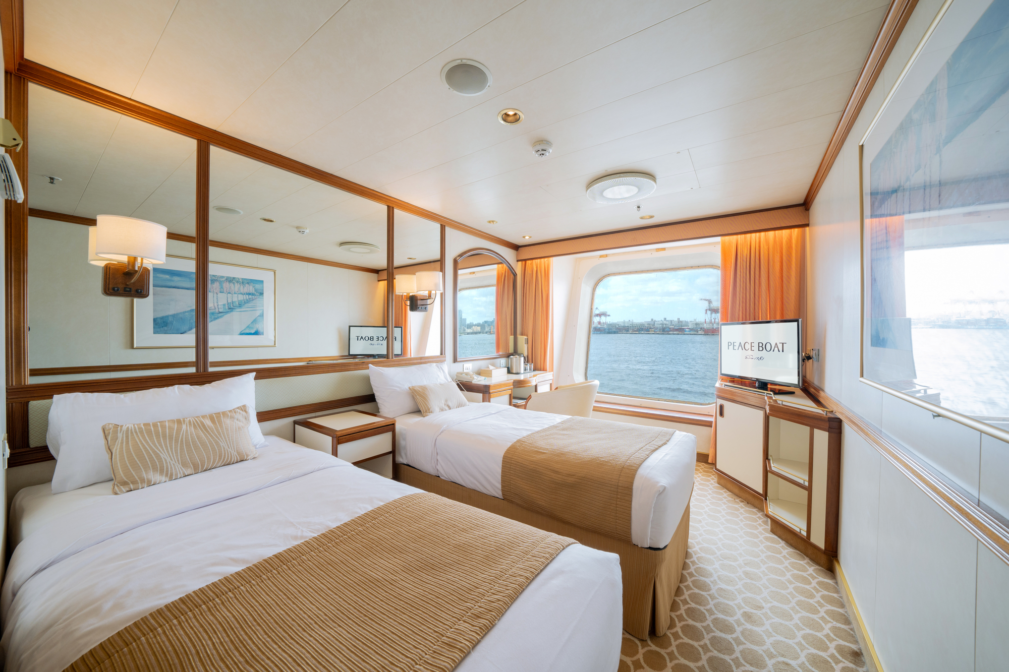 船旅ならではの景色を存分にお楽しみいただける、大きな窓が魅力の船室です。