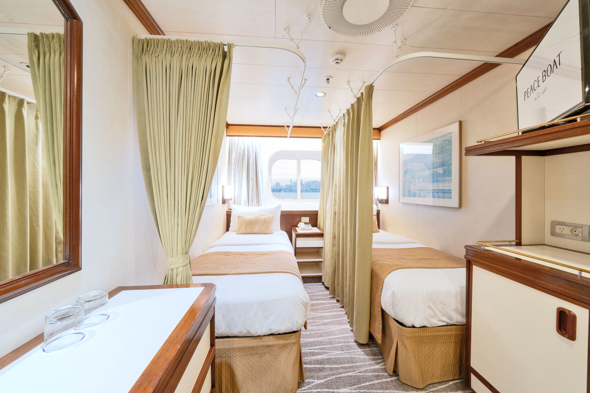 ピースボートクルーズに乗船される方の4割は、実はお一人参加です。同年代の同性の方でマッチングをし、2名1室で船室をシェアして使うタイプも人気です。