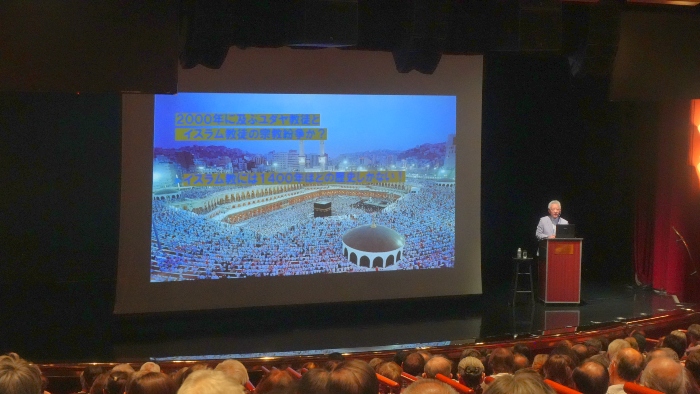 長年にわたり古代アンデス文明の発掘現場の撮影をしている写真家・義井豊さんによるアンデス文明講座。この日はアンデス地域の古代文明の中でもとりわけ豪華な黄金製品が発掘されたシカン遺跡をはじめ、今も多くの謎が残るインカ帝国のマチュピチュ遺跡について、写真とともに解説してくださいました。このような事前レクチャーが行えるのは、クルーズ旅行の大きなメリット。学びと知識を深めながら、寄港地での新たな出会いに期待が高まります。