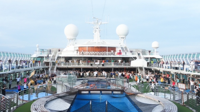 広い船のデッキでは、朝からラジオ体操やウォーキングなどに取り組む人の姿が見られます。約100日間におよぶ旅の日々を健康で快適に過ごすために、それぞれの体調に合わせた無理のない運動習慣が、旅をより充実したものにしてくれます。